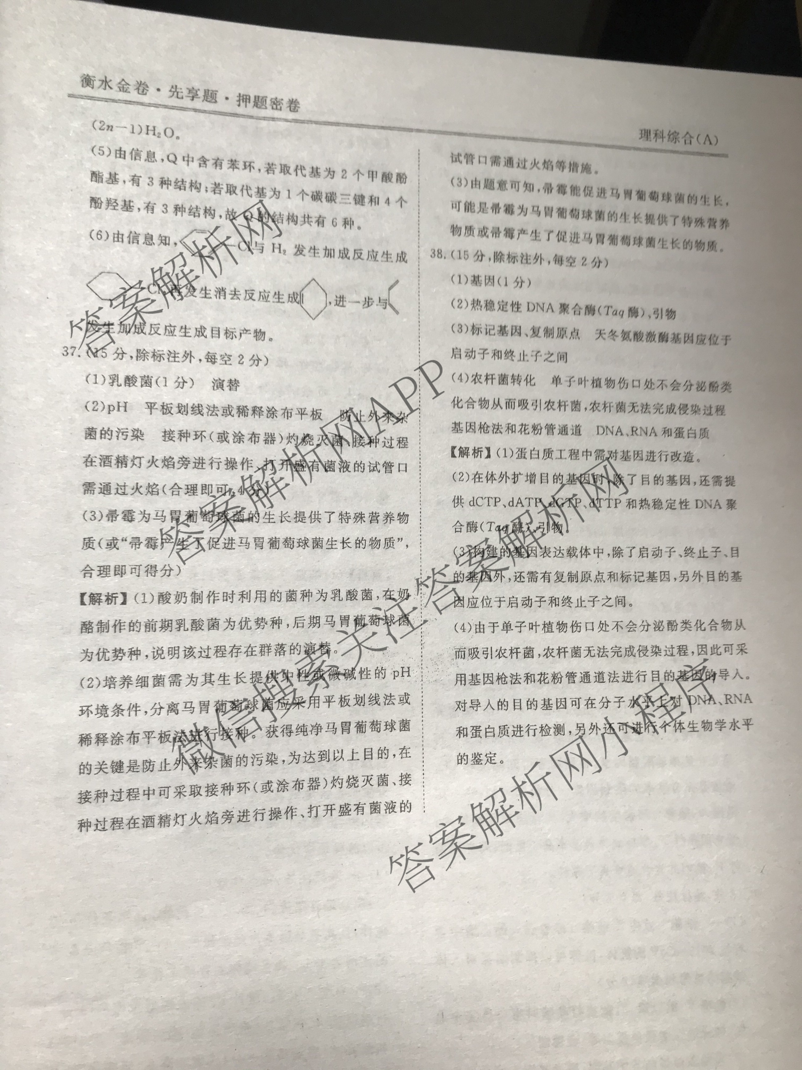 2020届衡水金卷先享题·押题密卷(A)理科综合答案,目前衡水金卷先享题答案网已经汇总了2020届衡水金卷先享题·押题密卷(A)理科综合答案的各科答案和试卷,获取更多衡水金卷先享题答案解析,请在关注本站。