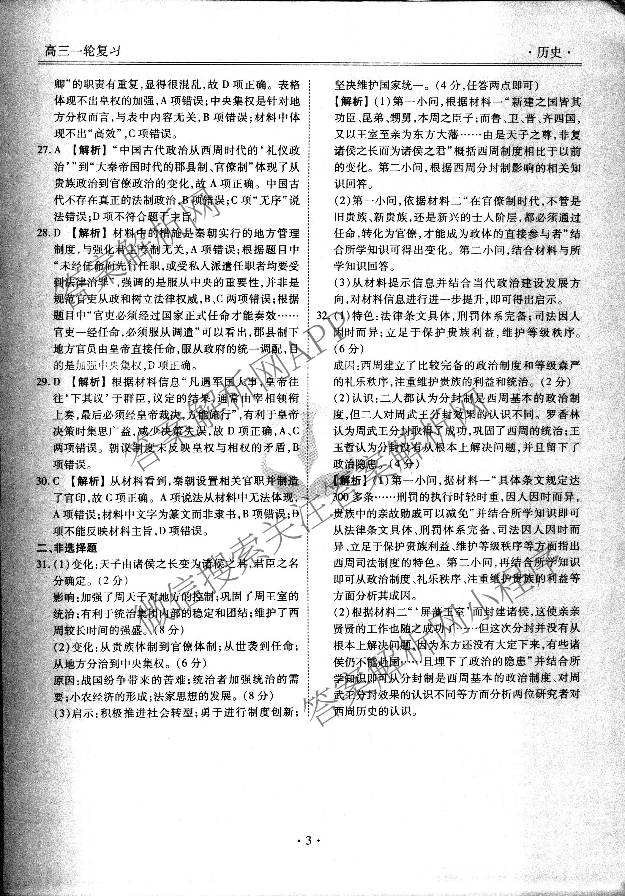 2019-2020衡水金卷先享题周测卷历史(一)1答案