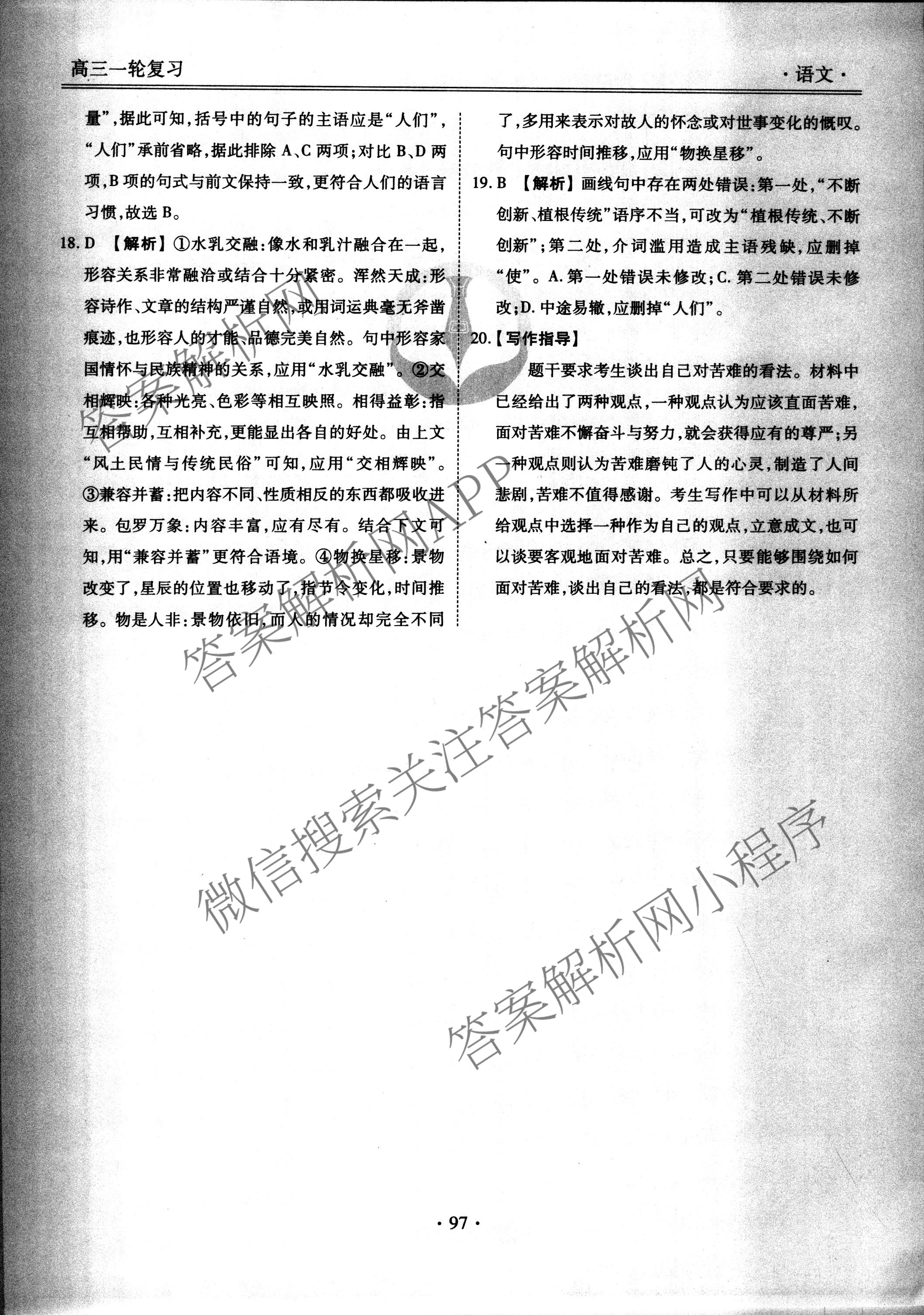 2019-2020衡水金卷先享题周测卷语文(二十五)25答案