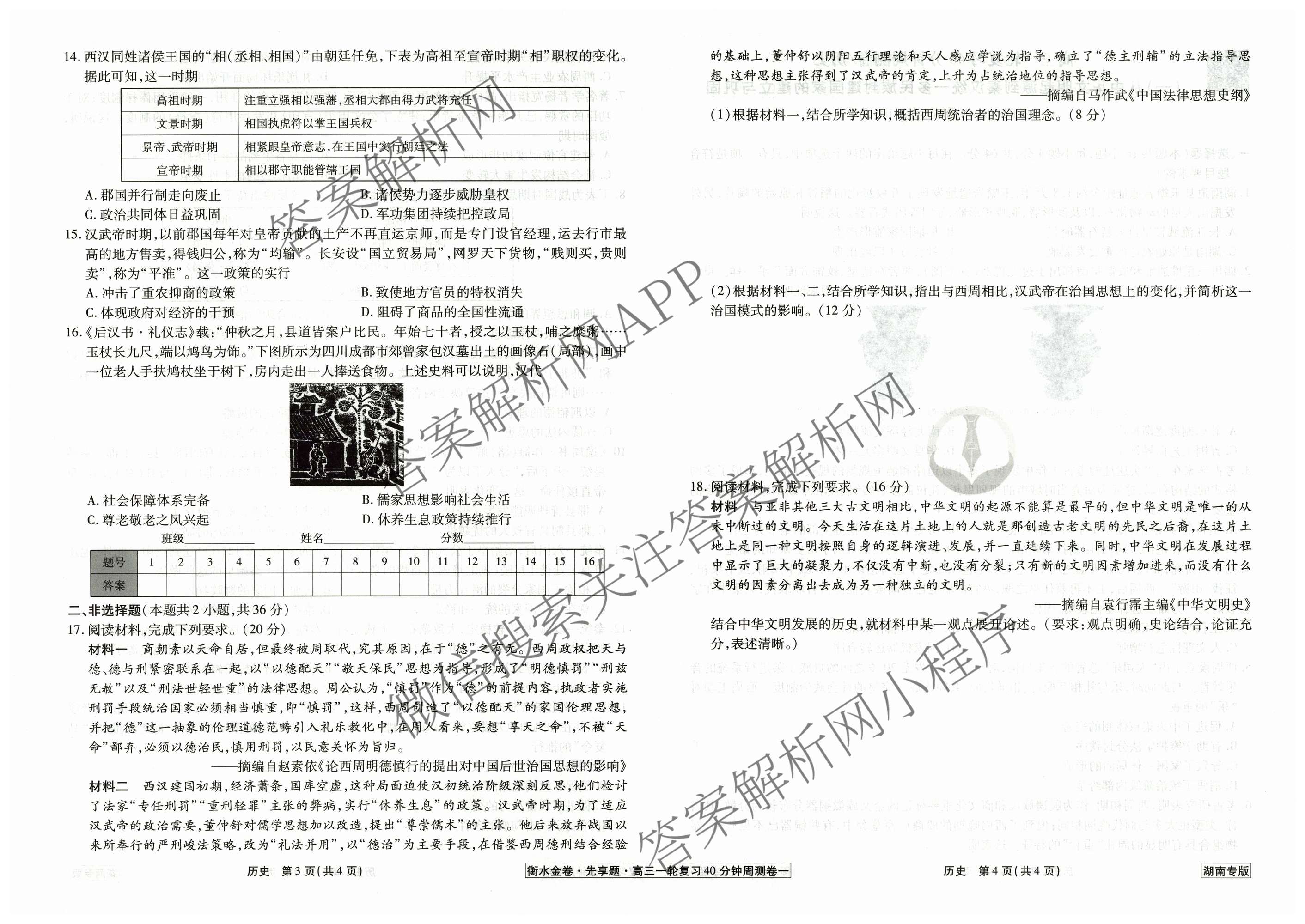 - 2024-2025(高三)[衡水金卷先享题]一轮复习40分钟周测卷历史(湖南专版)(一)1试题