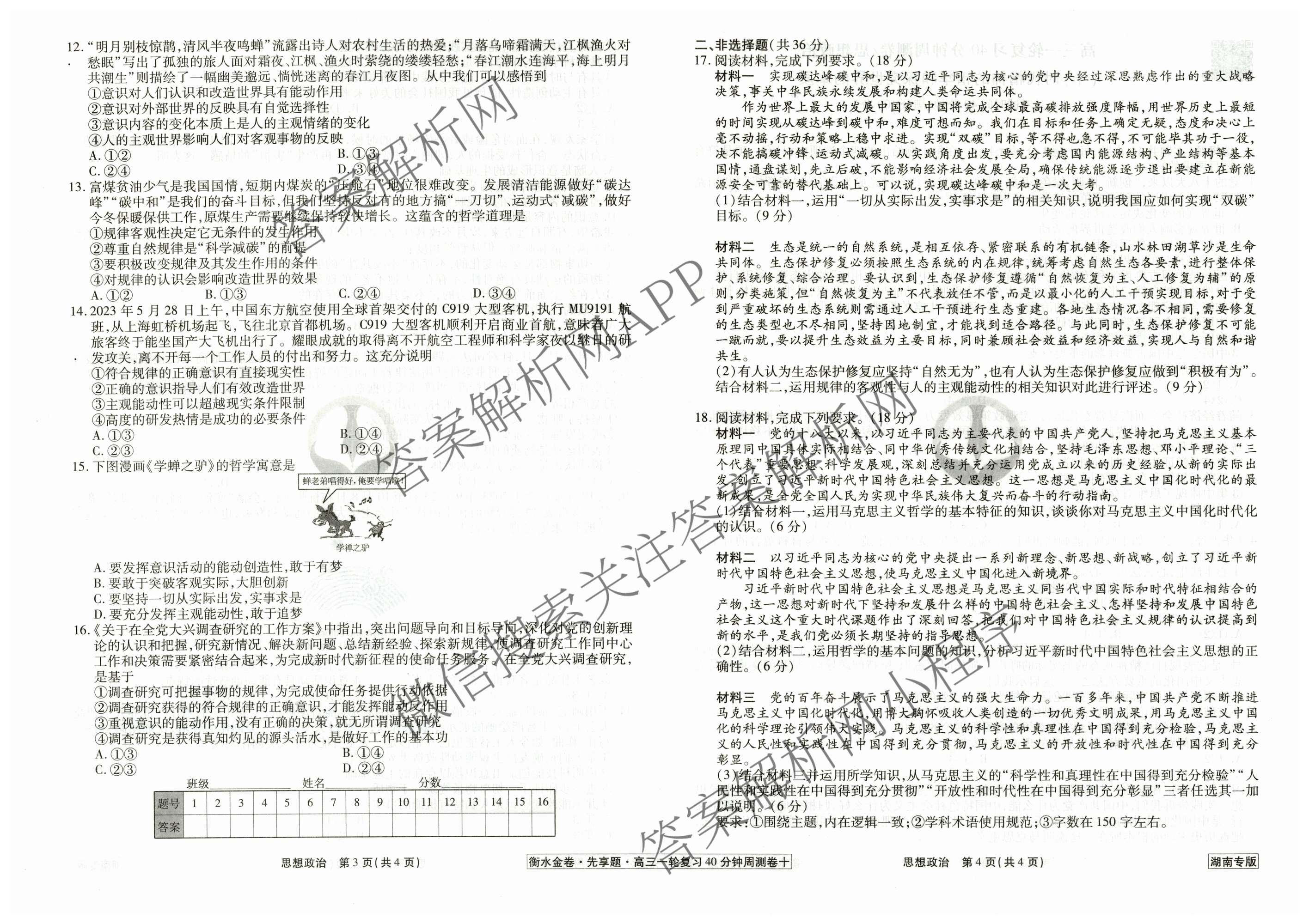 2024-2025衡水金卷先享题·高三一轮复习40分钟周测卷·政治(湖南专版)(十)10试题,目前衡水金卷先享题答案网已经汇总了2024-2025衡水金卷先享题·高三一轮复习40分钟周测卷·政治(湖南专版)(十)10试题的各科答案和试卷,获取更多衡水金卷先享题答案解析,请在关注本站。
