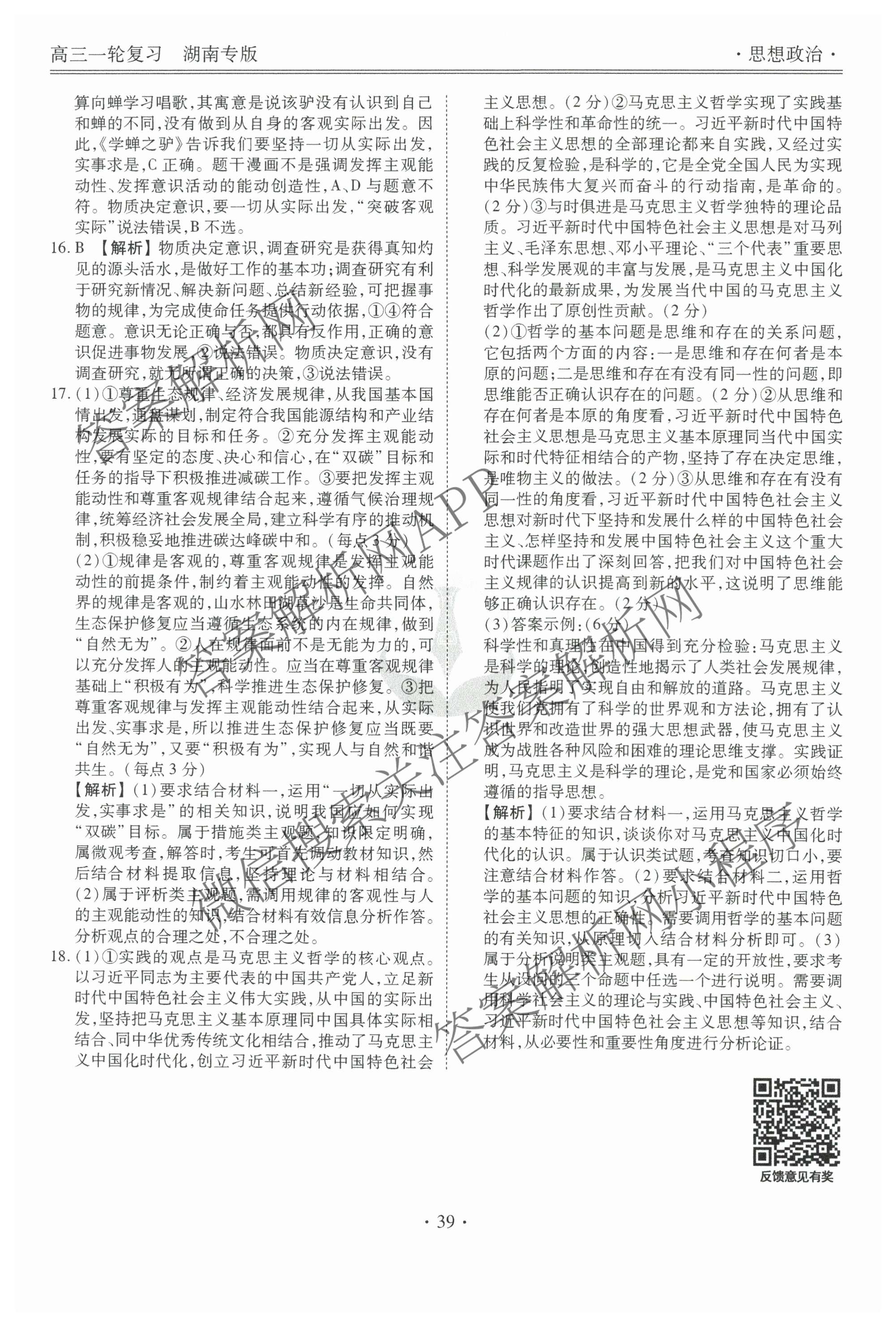 - 2024~2025高三(衡水金卷先享题)一轮复习40分钟周测卷政治(湖南专版)(十)10答案