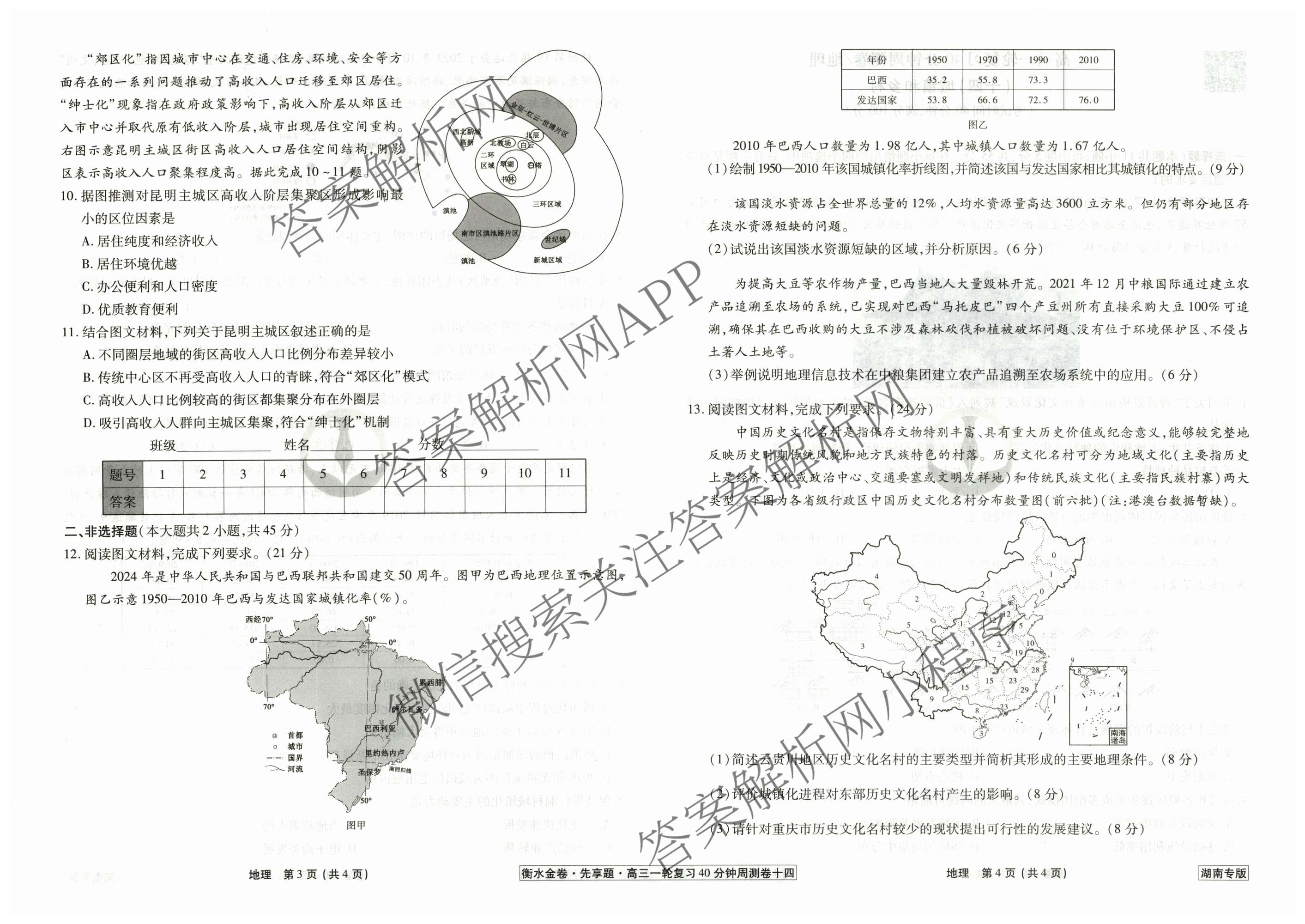 - 2024~2025高三(衡水金卷先享题)·一轮复习40分钟周测卷·地理(湖南专版)(十四)14答案