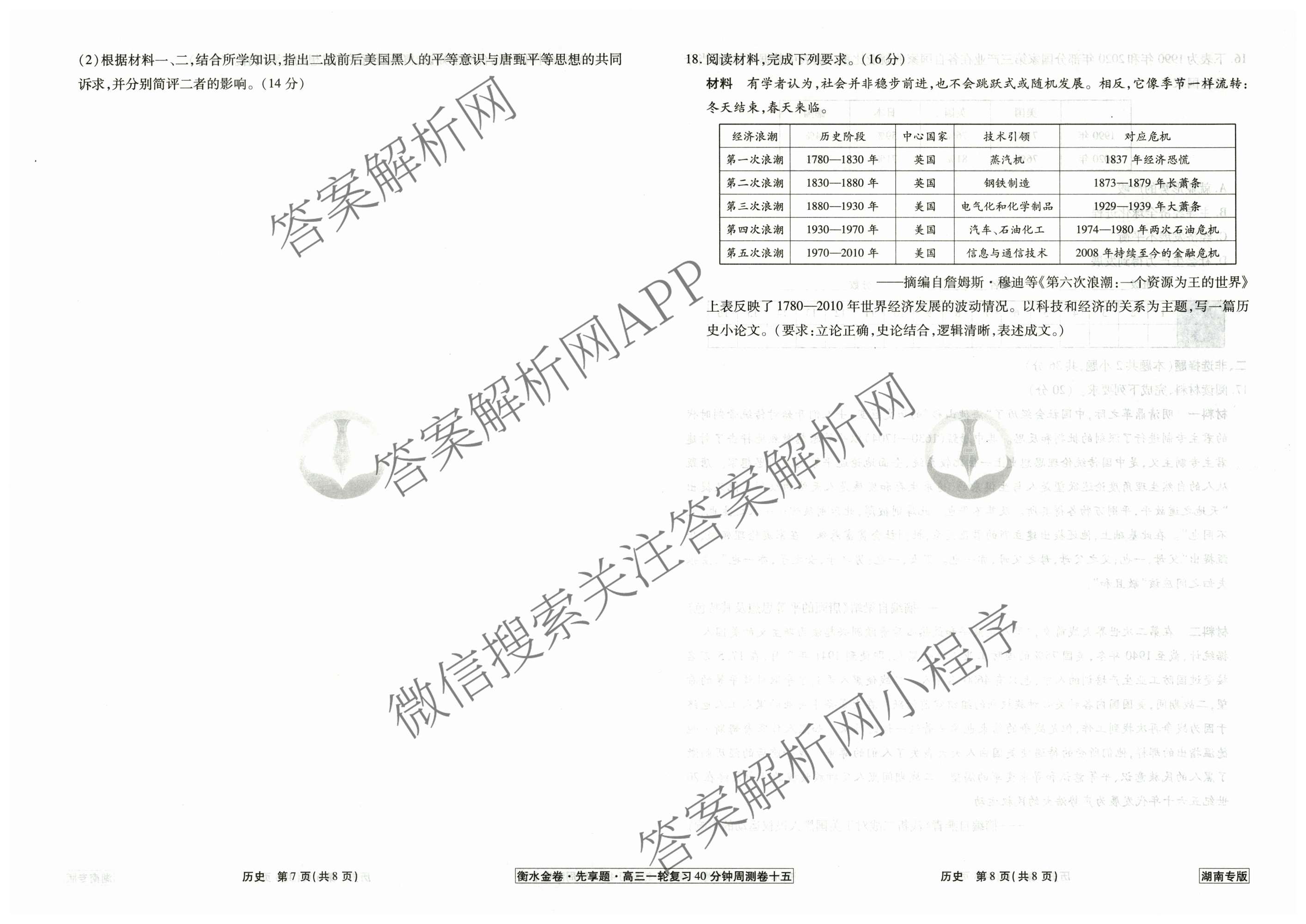 - (高三)2024~2025衡水金卷先享题一轮复习40分钟周测卷历史(湖南专版)(十五)15答案