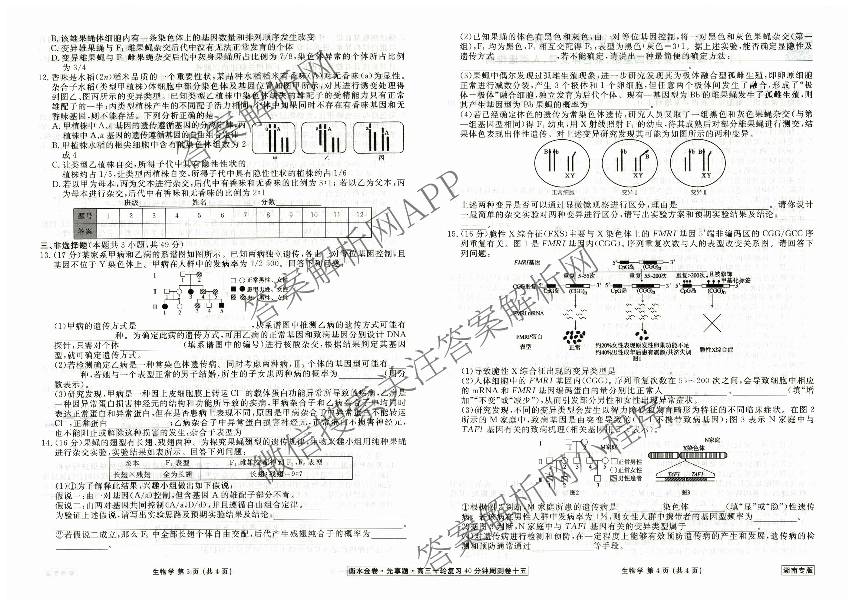 2024-2025衡水金卷先享题·高三一轮复习40分钟周测卷·生物(湖南专版)(十五)15试题,目前衡水金卷先享题答案网已经汇总了2024-2025衡水金卷先享题·高三一轮复习40分钟周测卷·生物(湖南专版)(十五)15试题的各科答案和试卷,获取更多衡水金卷先享题答案解析,请在关注本站。