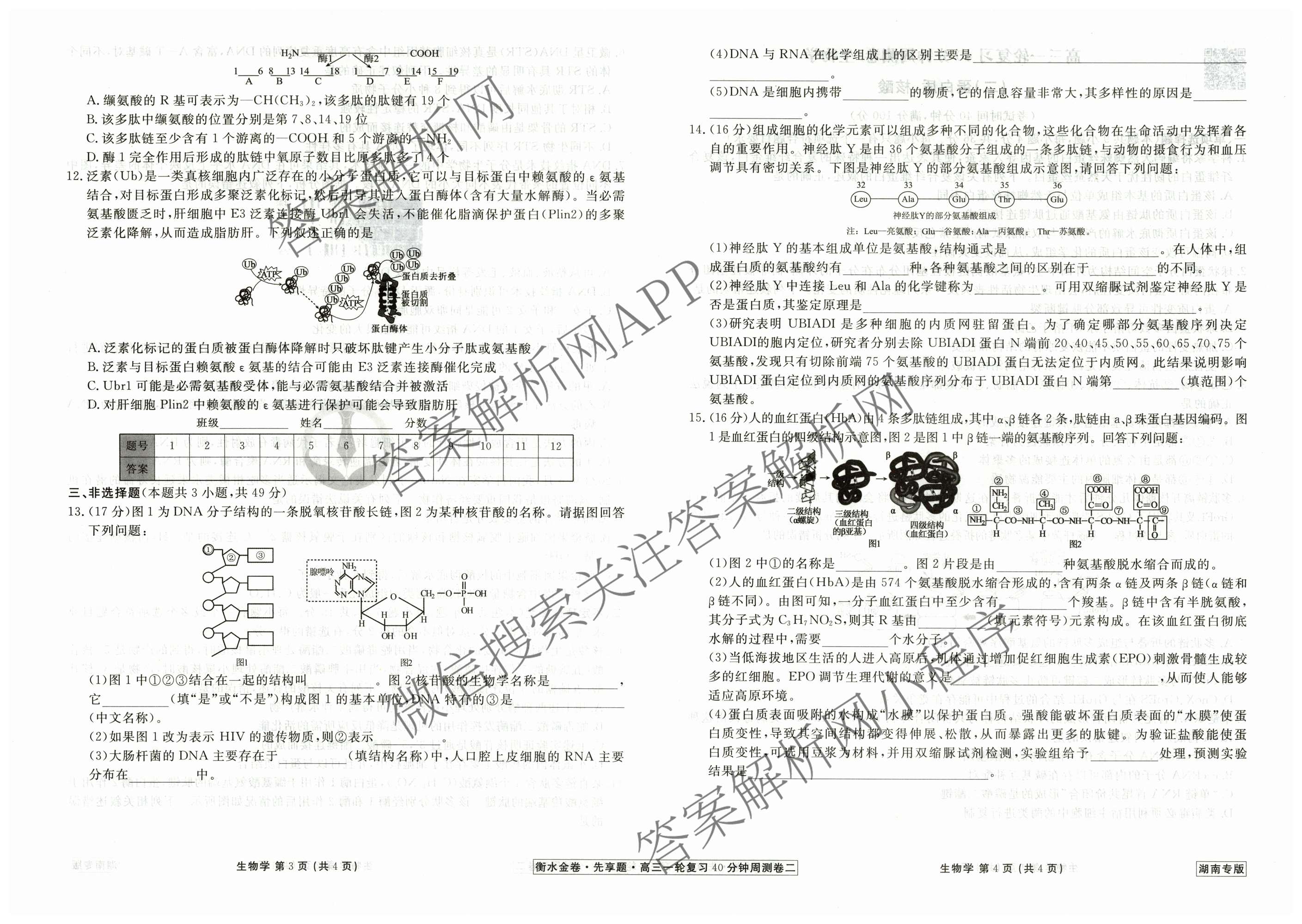 2024-2025衡水金卷先享题·高三一轮复习40分钟周测卷·生物(湖南专版)(二)2试题,目前衡水金卷先享题答案网已经汇总了2024-2025衡水金卷先享题·高三一轮复习40分钟周测卷·生物(湖南专版)(二)2试题的各科答案和试卷,获取更多衡水金卷先享题答案解析,请在关注本站。