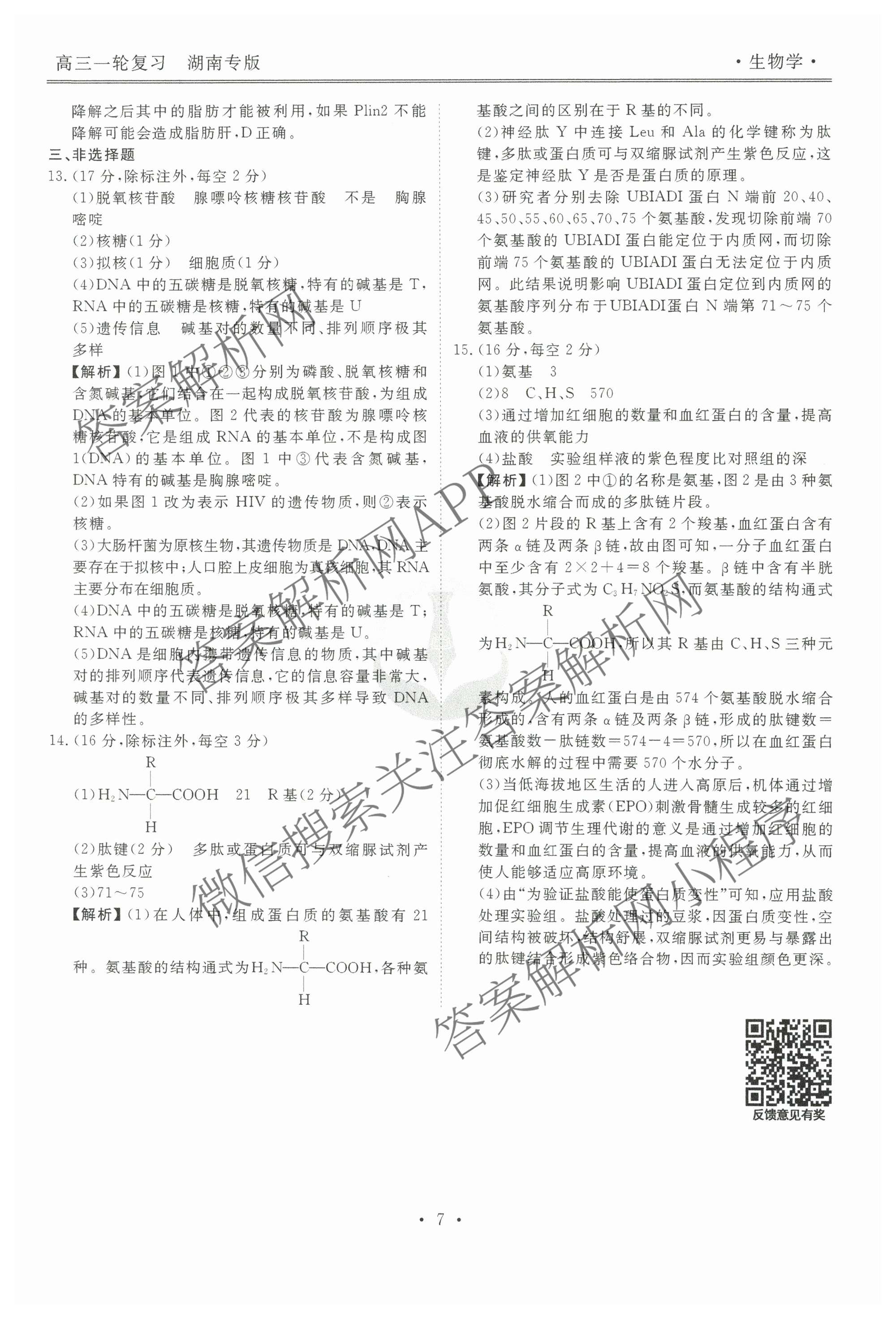 - 2024~2025[高三](衡水金卷先享题)·一轮复习40分钟周测卷·生物(湖南专版)(二)2答案