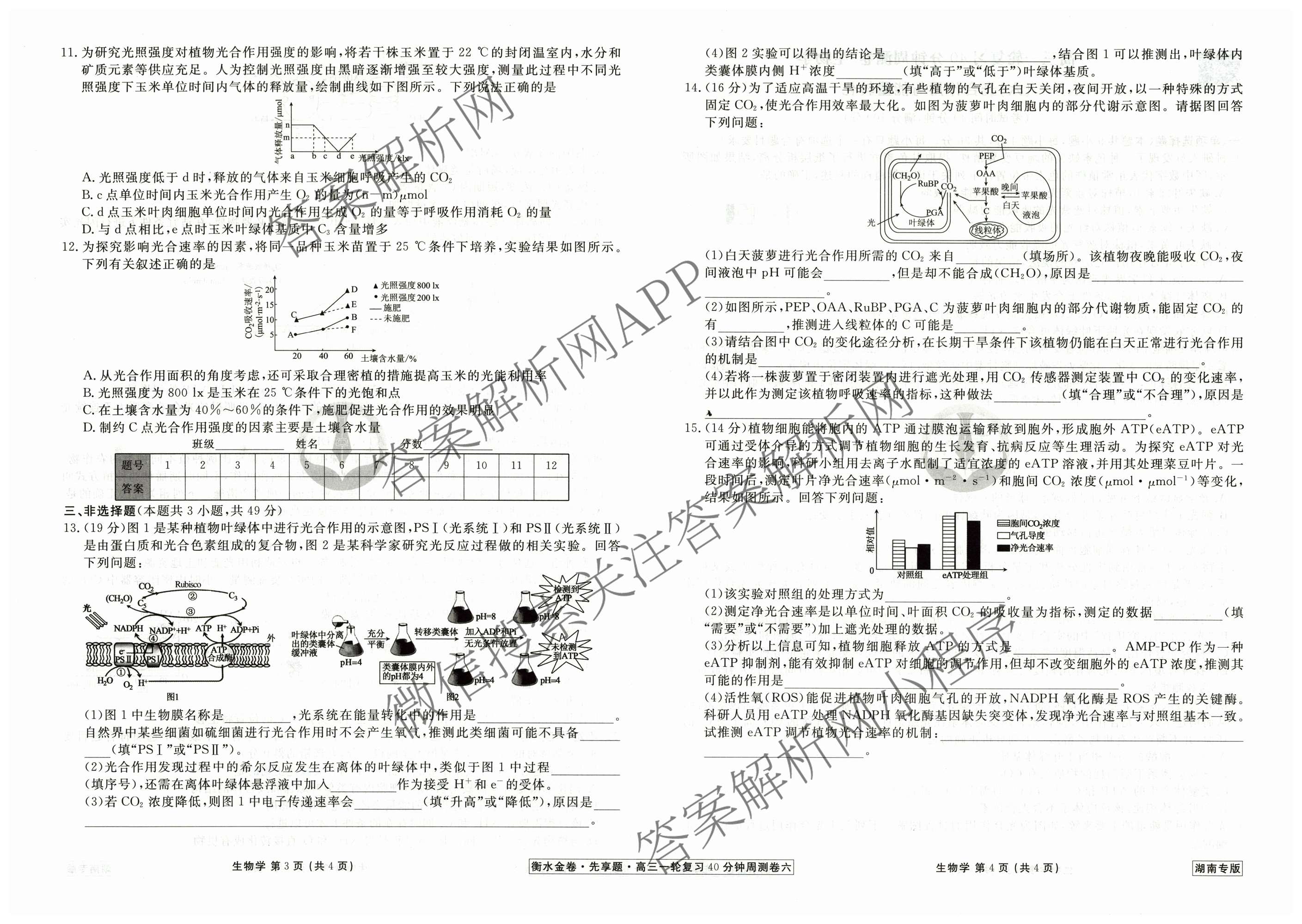 2024-2025衡水金卷先享题·高三一轮复习40分钟周测卷·生物(湖南专版)(六)6试题,目前衡水金卷先享题答案网已经汇总了2024-2025衡水金卷先享题·高三一轮复习40分钟周测卷·生物(湖南专版)(六)6试题的各科答案和试卷,获取更多衡水金卷先享题答案解析,请在关注本站。