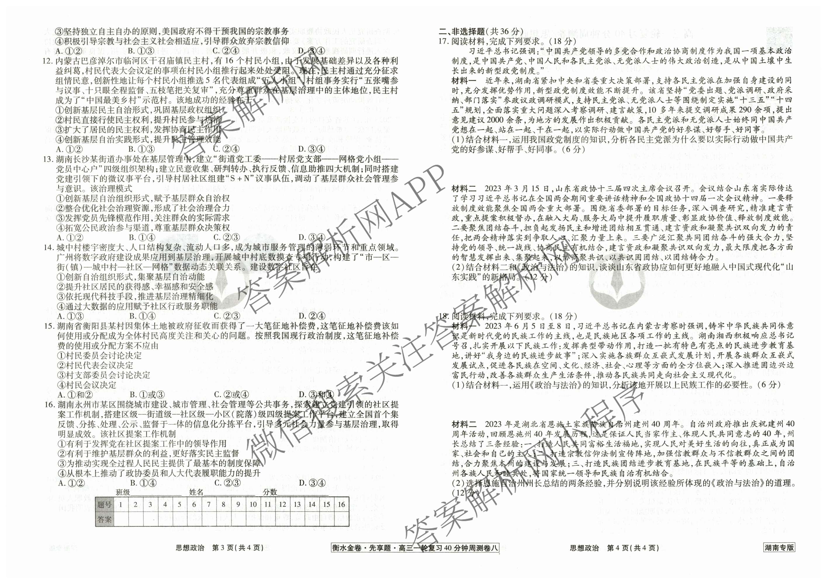 2024-2025衡水金卷先享题·高三一轮复习40分钟周测卷·政治(湖南专版)(八)8试题,目前衡水金卷先享题答案网已经汇总了2024-2025衡水金卷先享题·高三一轮复习40分钟周测卷·政治(湖南专版)(八)8试题的各科答案和试卷,获取更多衡水金卷先享题答案解析,请在关注本站。