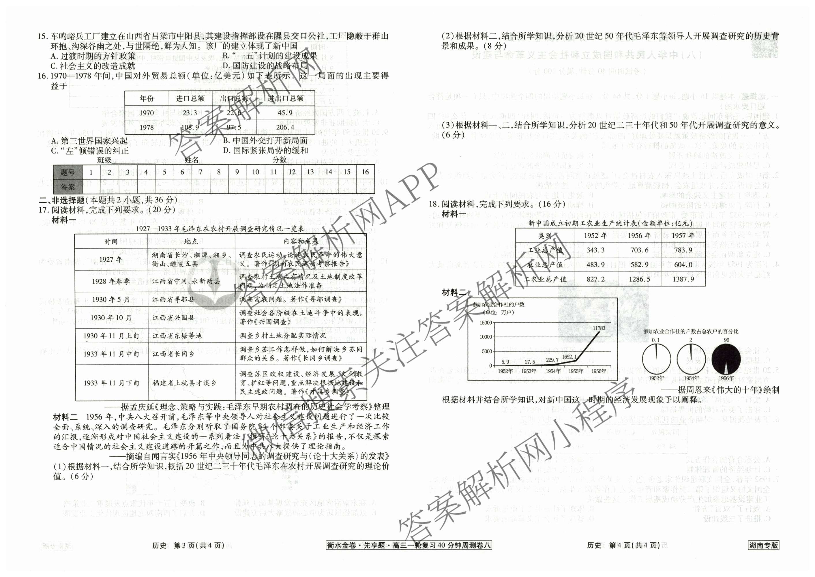 - [高三]2024~2025[衡水金卷先享题]·一轮复习40分钟周测卷·历史(湖南专版)(八)8试题