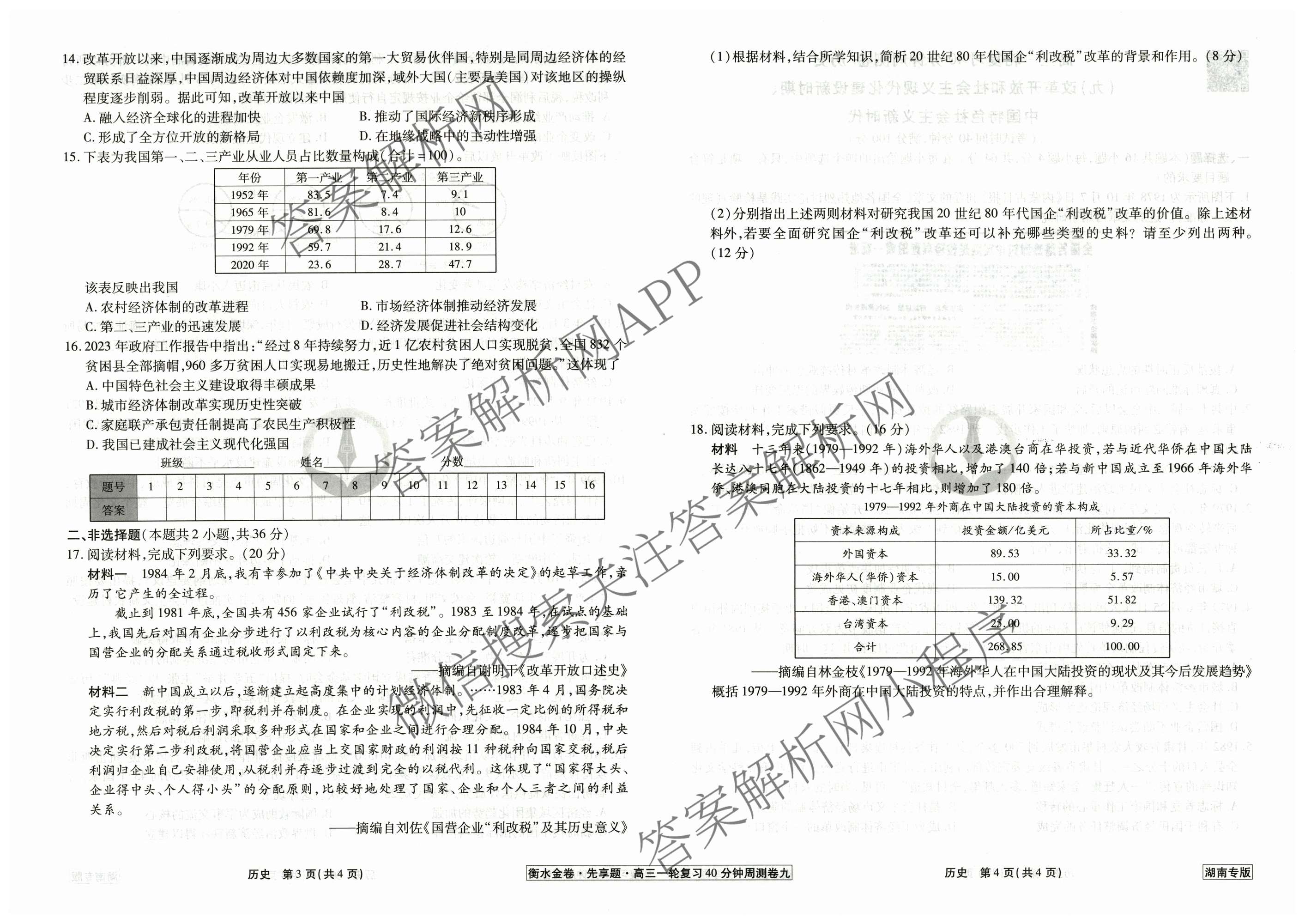 - (高三)2024~2025(衡水金卷先享题)·一轮复习40分钟周测卷·历史(湖南专版)(九)9答案