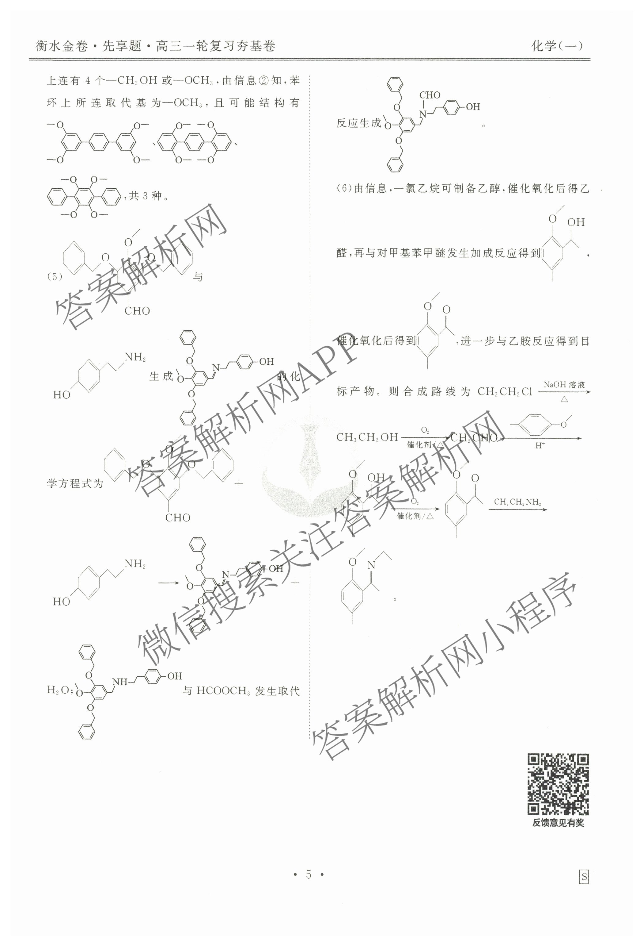 - [高三]衡水金卷先享题夯基卷 2025年普通高中学业水平选择性考试模拟 化学(HN)(一)1答案