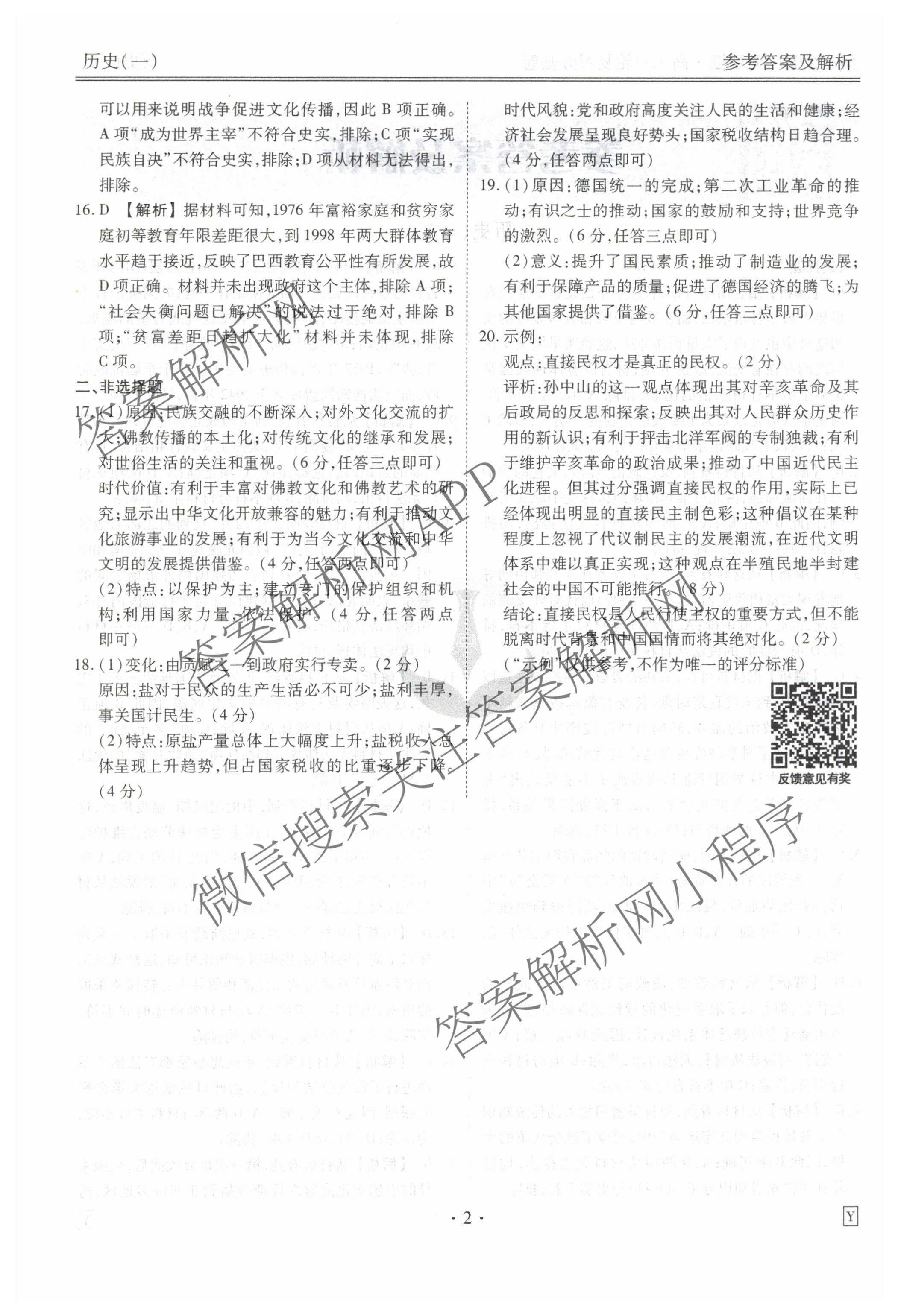 - (高三)衡水金卷先享题夯基卷 2025年普通高中学业水平选择性考试模拟试题 历史(Y)(一)1答案
