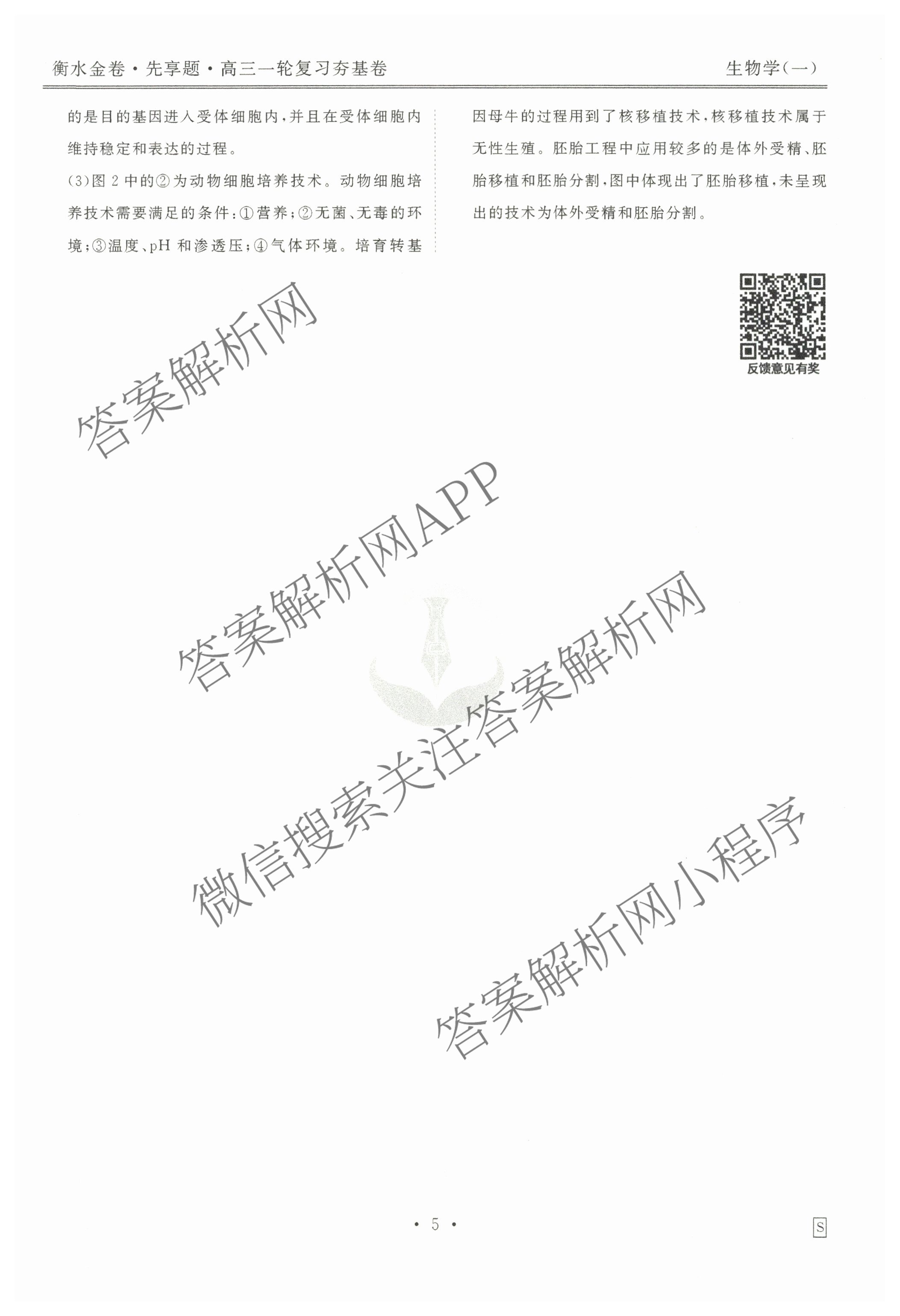 - (高三)[衡水金卷先享题]夯基卷 2025年普通高中学业水平选择性考试模拟试题 生物(S)(一)1答案