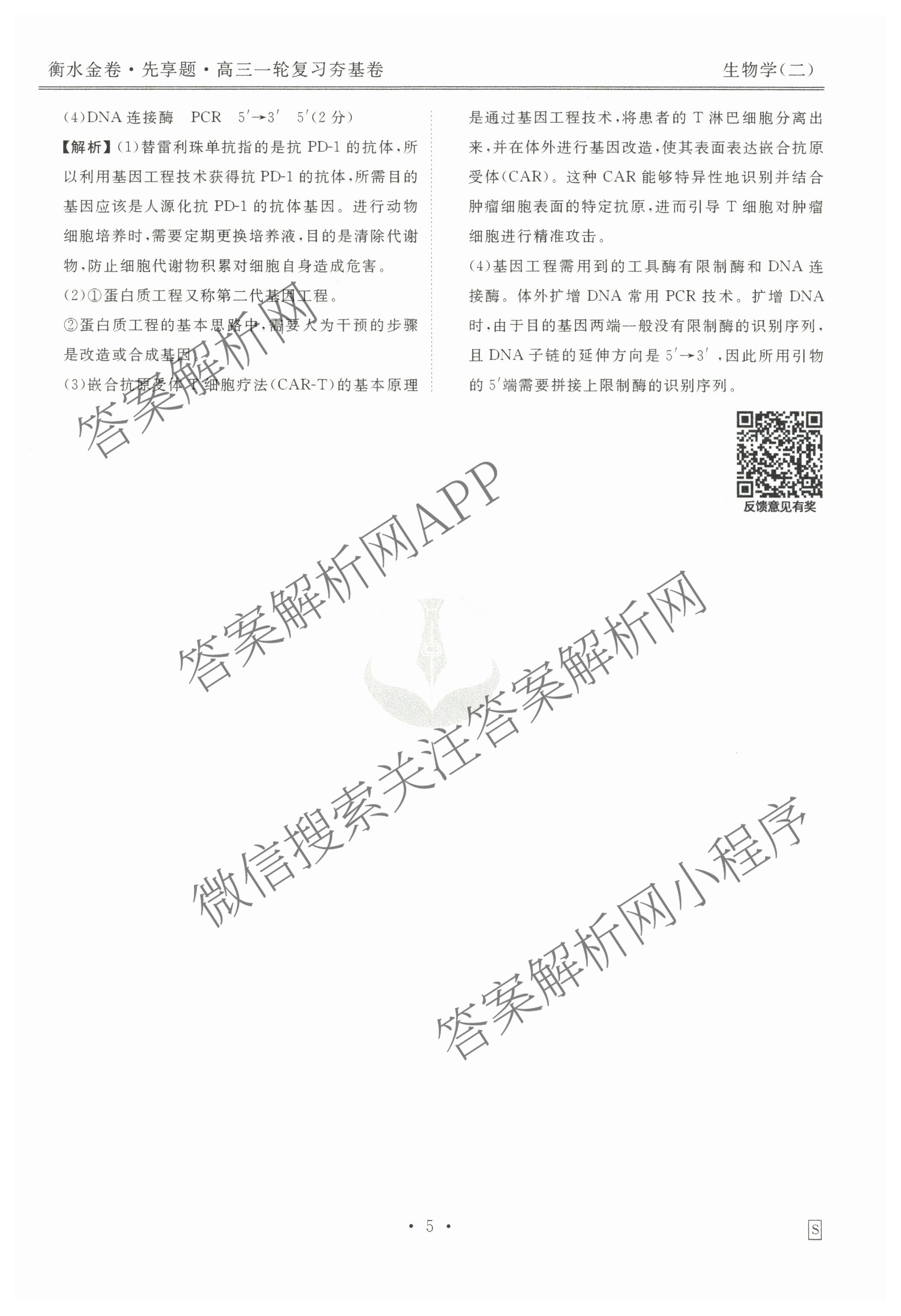 - [衡水金卷先享题]夯基卷 2025年普通高中学业水平选择性考试模拟试题 生物(S)(二)2答案