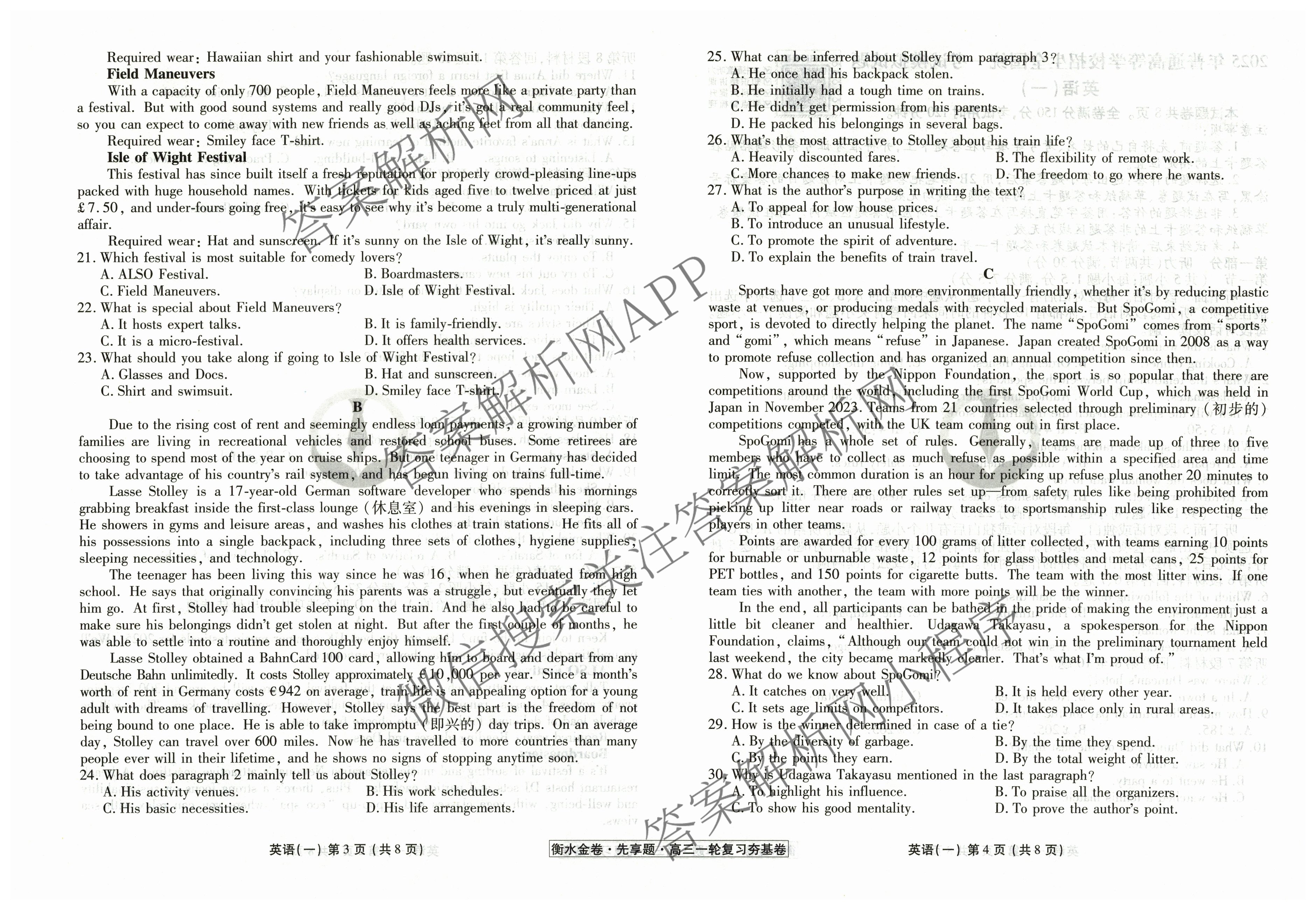 - (衡水金卷先享题)·夯基卷 2025年普通高等学校招生全国统一考试模拟试题 英语(一)1答案
