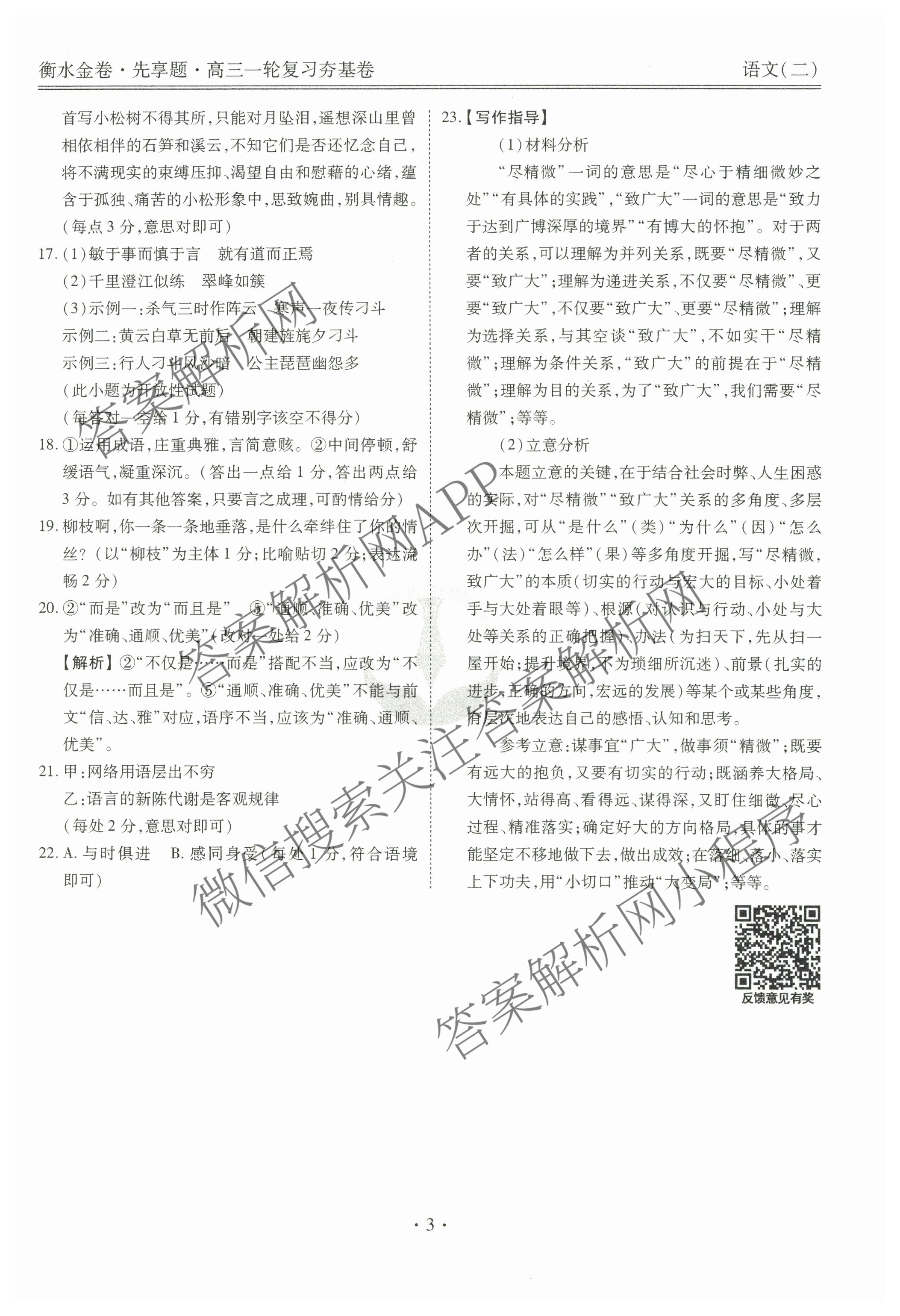 - (高三)衡水金卷先享题夯基卷 2025年普通高等学校招生全国统一考试模拟试题 语文(二)2答案