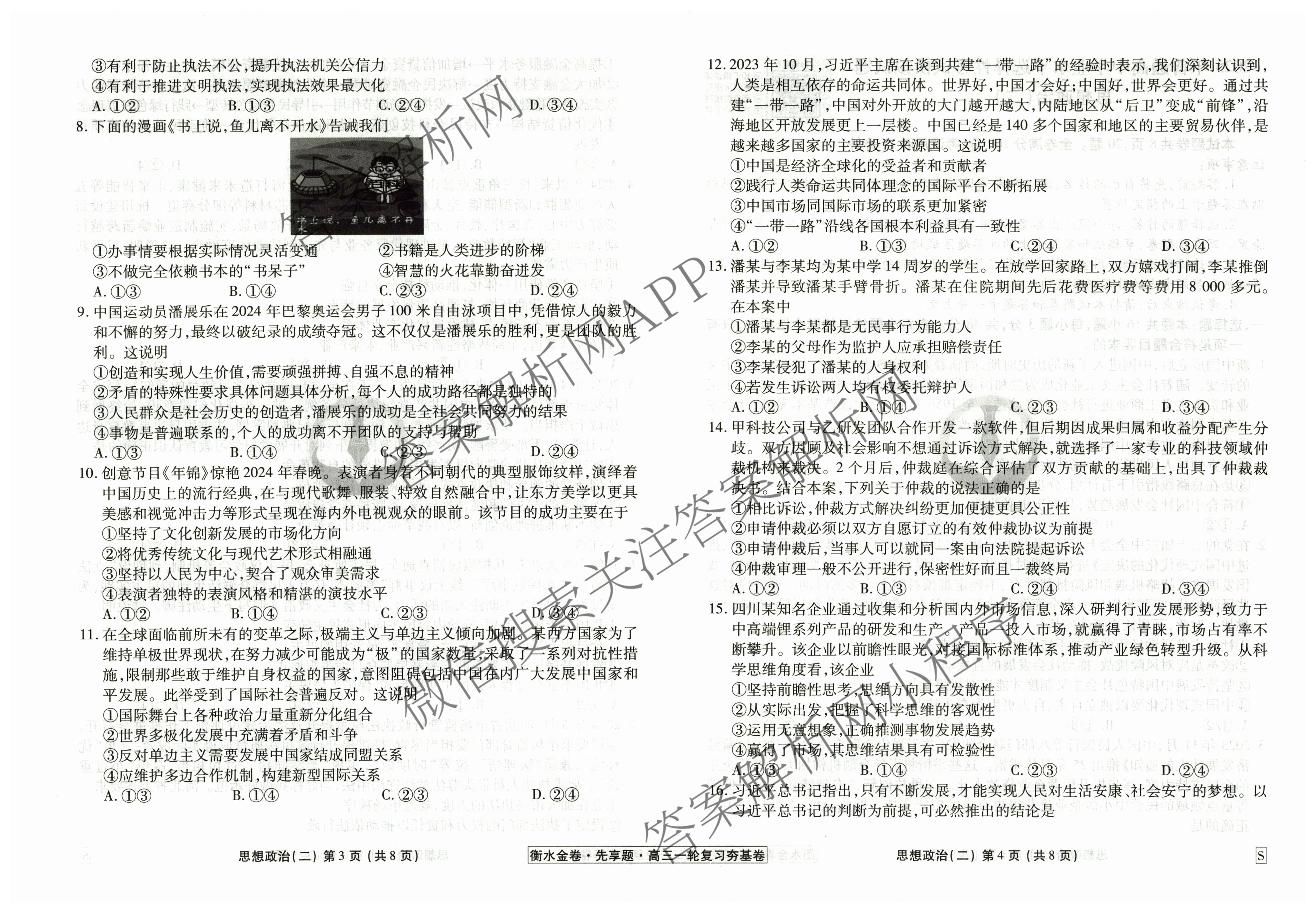 衡水金卷先享题·夯基卷 2025年普通高中学业水平选择性考试模拟试题 政治(S)(二)2试题,目前衡水金卷先享题答案网已经汇总了衡水金卷先享题·夯基卷 2025年普通高中学业水平选择性考试模拟试题 政治(S)(二)2试题的各科答案和试卷,获取更多衡水金卷先享题答案解析,请在关注本站。