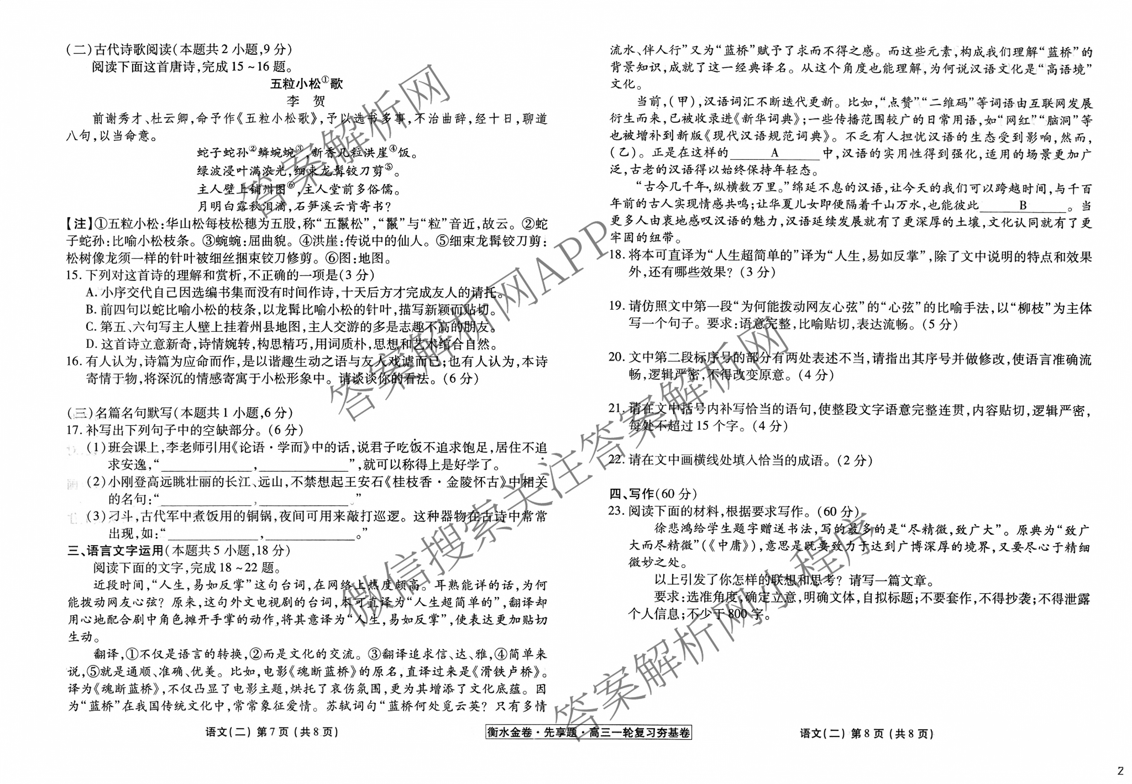 衡水金卷先享题·夯基卷 2025年普通高等学校招生全国统一考试模拟试题 语文(二)2试题,目前衡水金卷先享题答案网已经汇总了衡水金卷先享题·夯基卷 2025年普通高等学校招生全国统一考试模拟试题 语文(二)2试题的各科答案和试卷,获取更多衡水金卷先享题答案解析,请在关注本站。