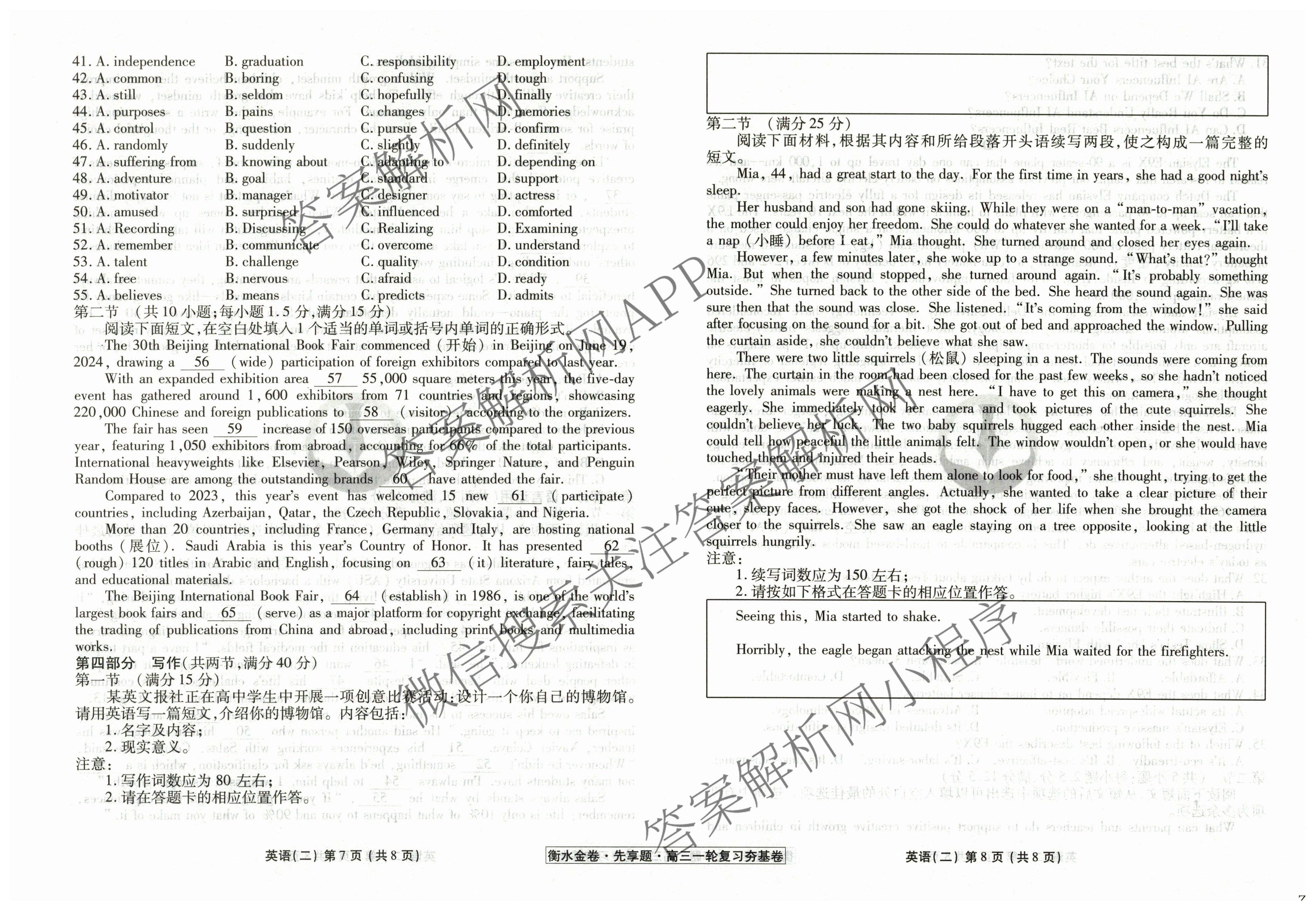 衡水金卷先享题·夯基卷 2025年普通高等学校招生全国统一考试模拟试题 英语(二)2试题,目前衡水金卷先享题答案网已经汇总了衡水金卷先享题·夯基卷 2025年普通高等学校招生全国统一考试模拟试题 英语(二)2试题的各科答案和试卷,获取更多衡水金卷先享题答案解析,请在关注本站。
