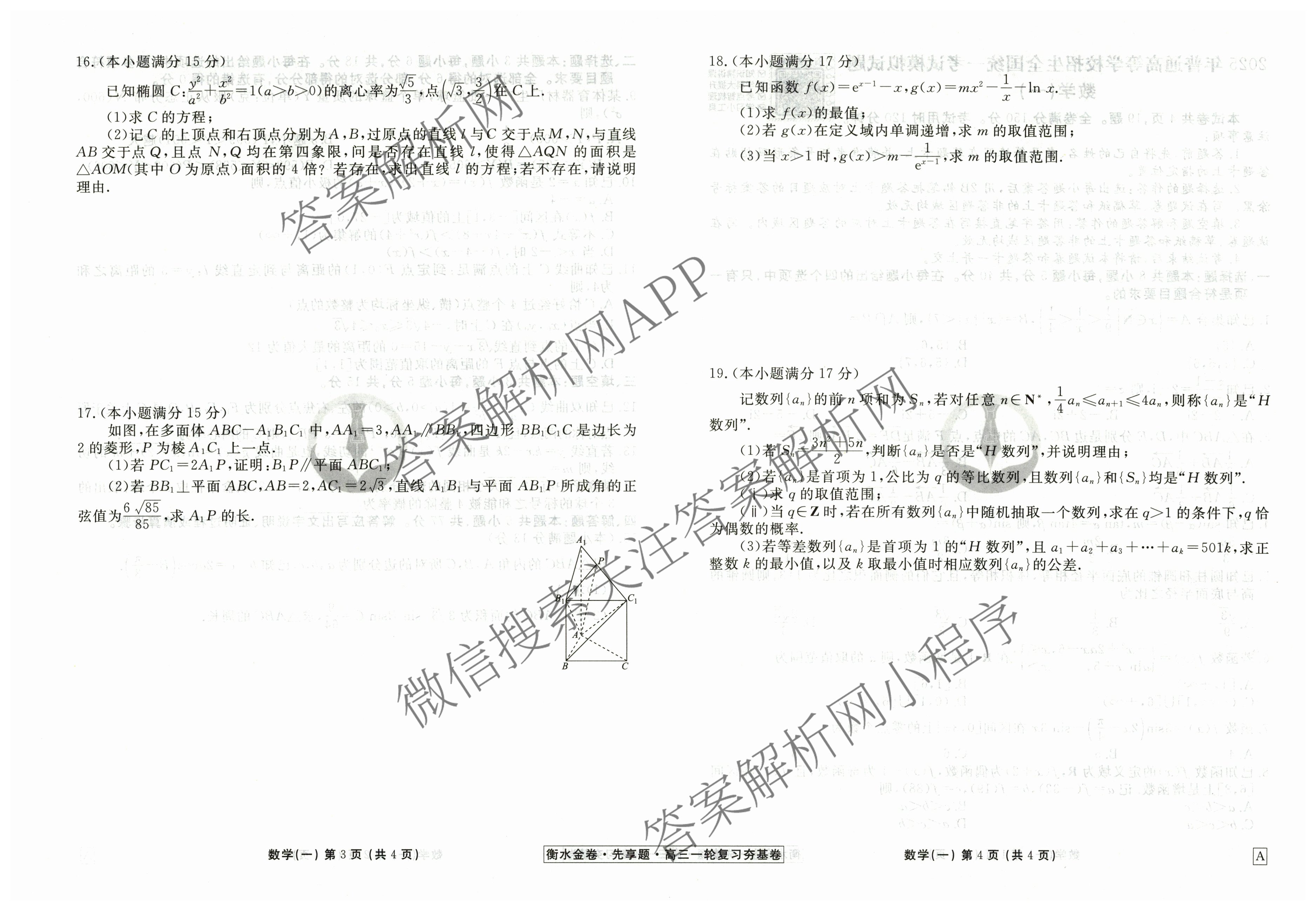 - [高三]衡水金卷先享题夯基卷 2025年普通高等学校招生全国统一考试模拟 数学(C)(一)1试题