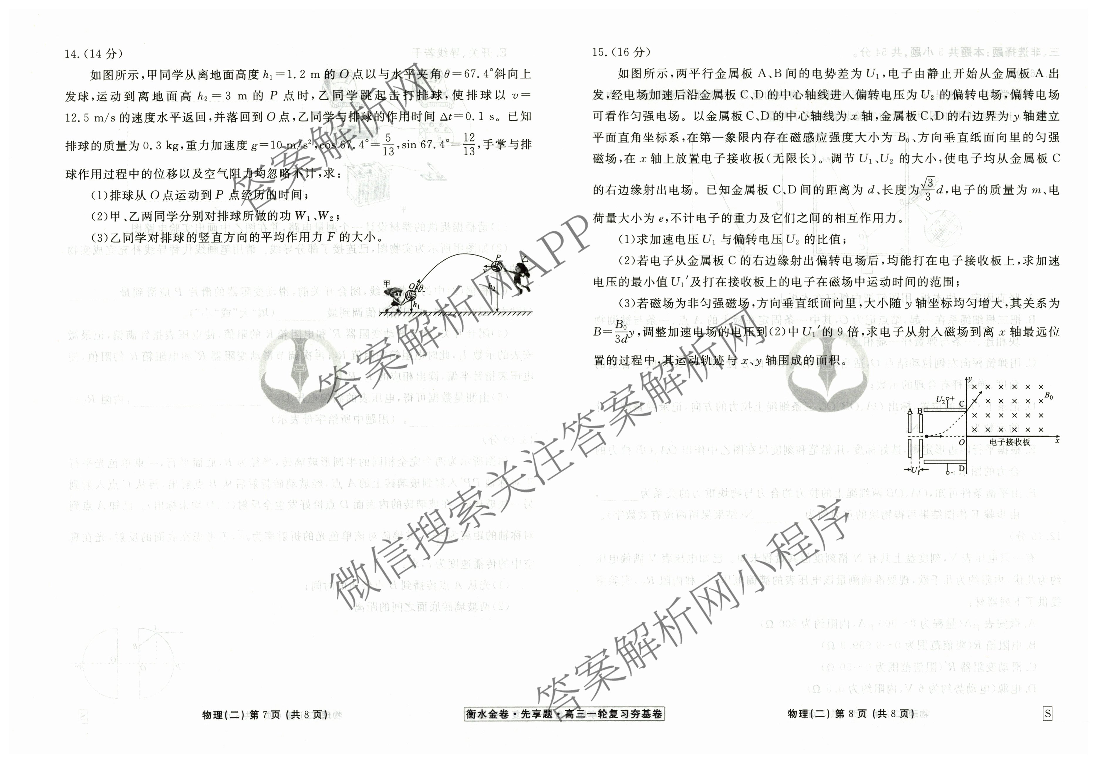 - [高三](衡水金卷先享题)·夯基卷 2025年普通高中学业水平选择性考试模拟 物理(W)(二)2答案