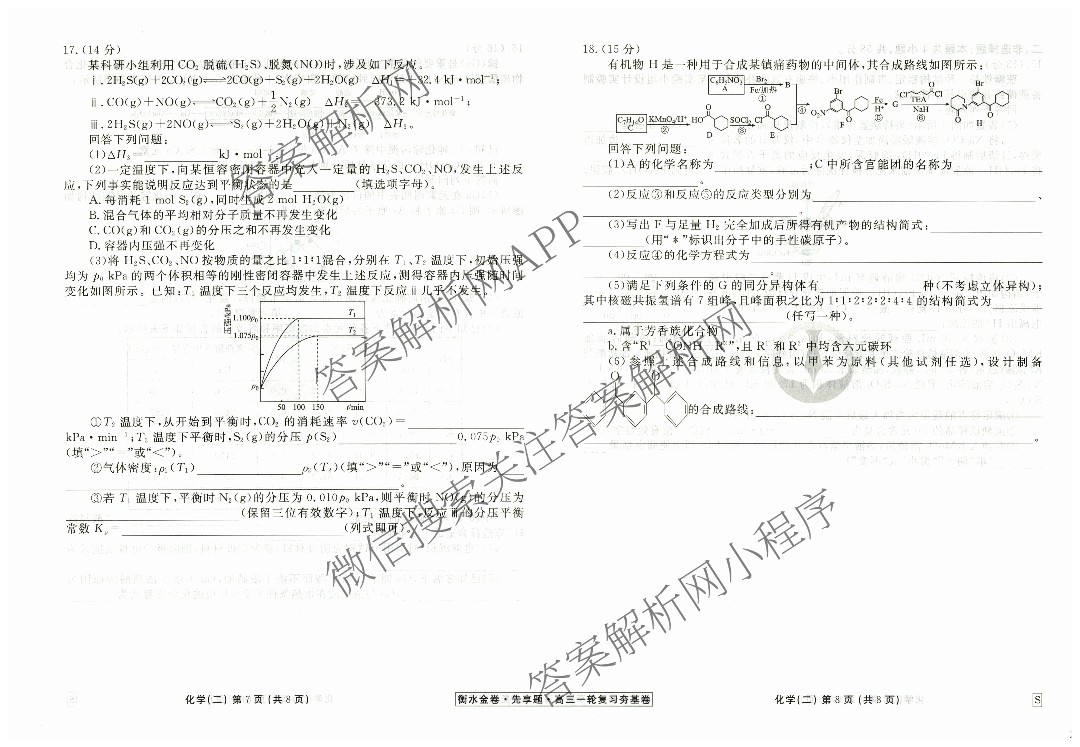 - [衡水金卷先享题]夯基卷 2025年普通高中学业水平选择性考试模拟 化学(GS)(二)2答案