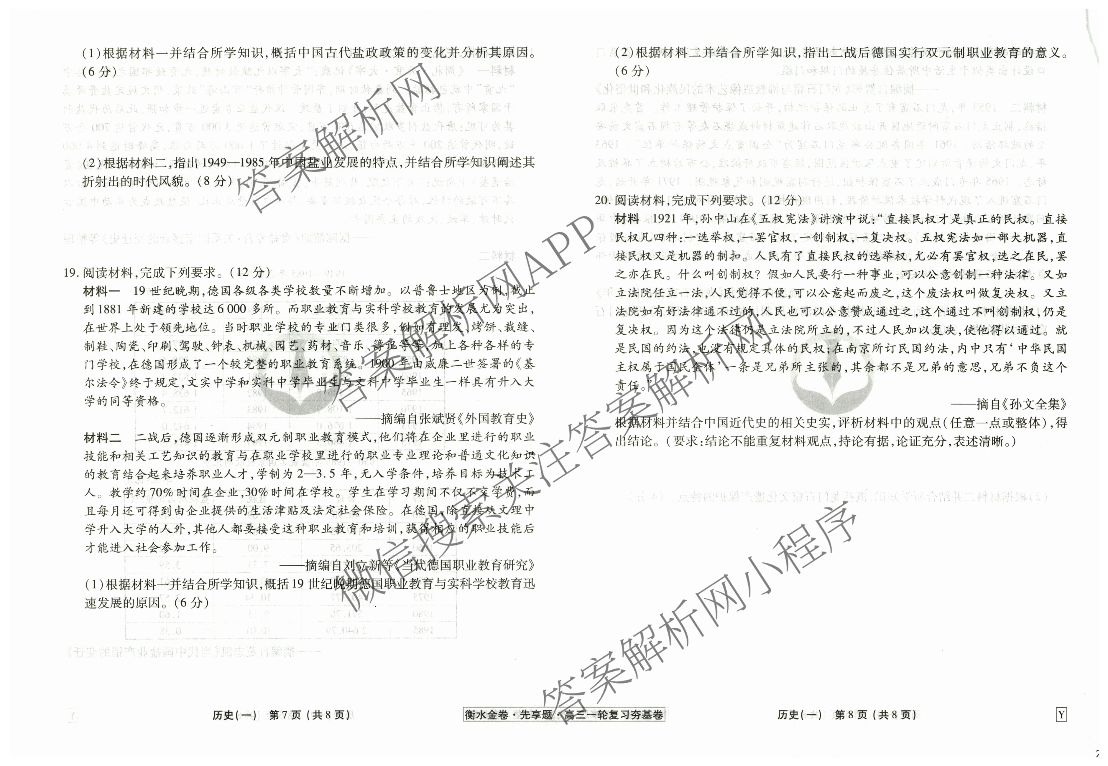 - [衡水金卷先享题]夯基卷 2025年普通高中学业水平选择性考试模拟 历史(AH)(一)1答案
