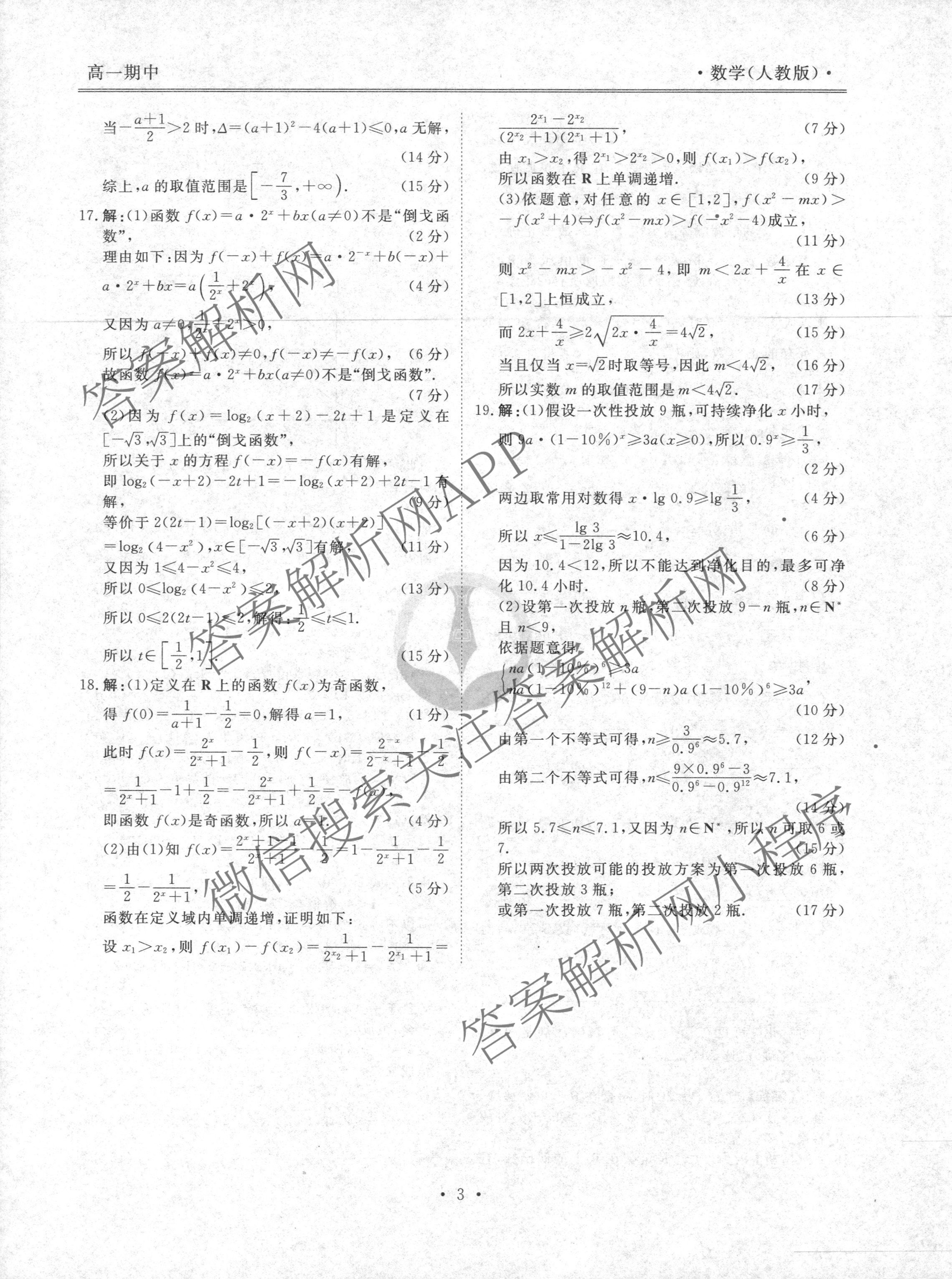 - [高一][衡水金卷先享题]·月考卷 2024-2025学年度上学期年级期中考试数学(人教版)答案