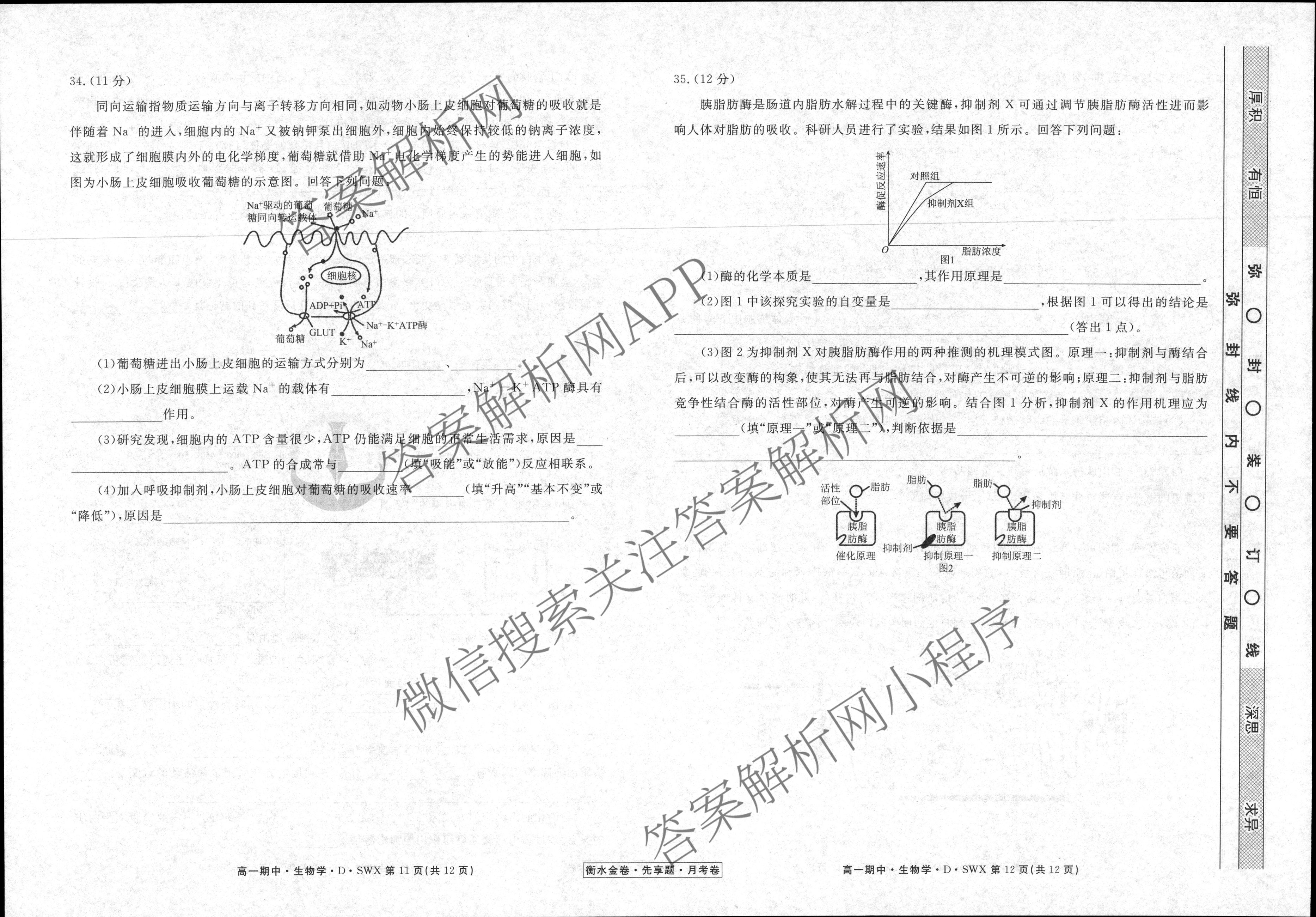 衡水金卷先享题·月考卷 2024-2025学年度上学期高一年级期中考试生物(D·SWX)试题,目前衡水金卷先享题答案网已经汇总了衡水金卷先享题·月考卷 2024-2025学年度上学期高一年级期中考试生物(D·SWX)试题的各科答案和试卷,获取更多衡水金卷先享题答案解析,请在关注本站。