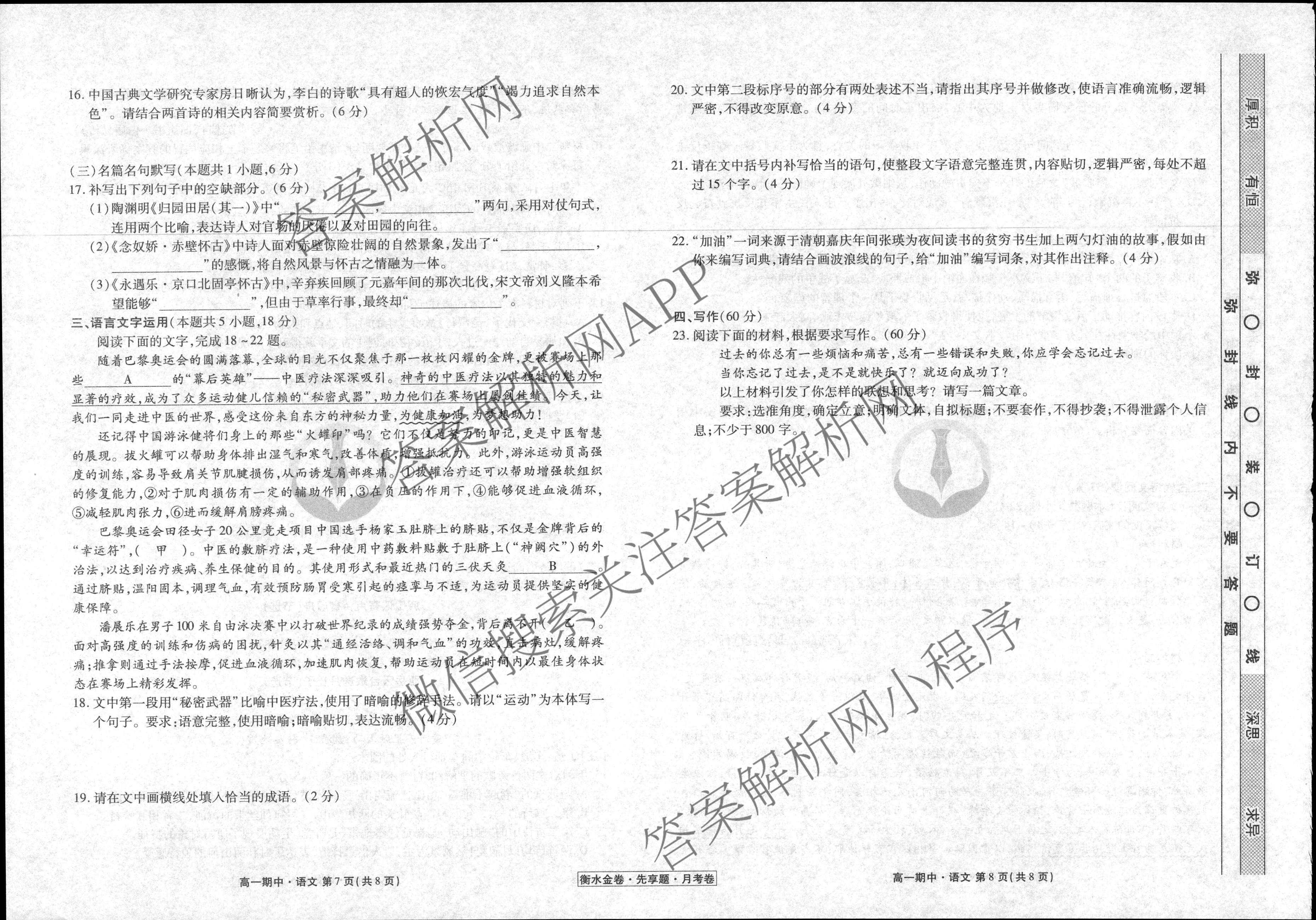 衡水金卷先享题·月考卷 2024-2025学年度上学期高一年级期中考试语文试题,目前衡水金卷先享题答案网已经汇总了衡水金卷先享题·月考卷 2024-2025学年度上学期高一年级期中考试语文试题的各科答案和试卷,获取更多衡水金卷先享题答案解析,请在关注本站。