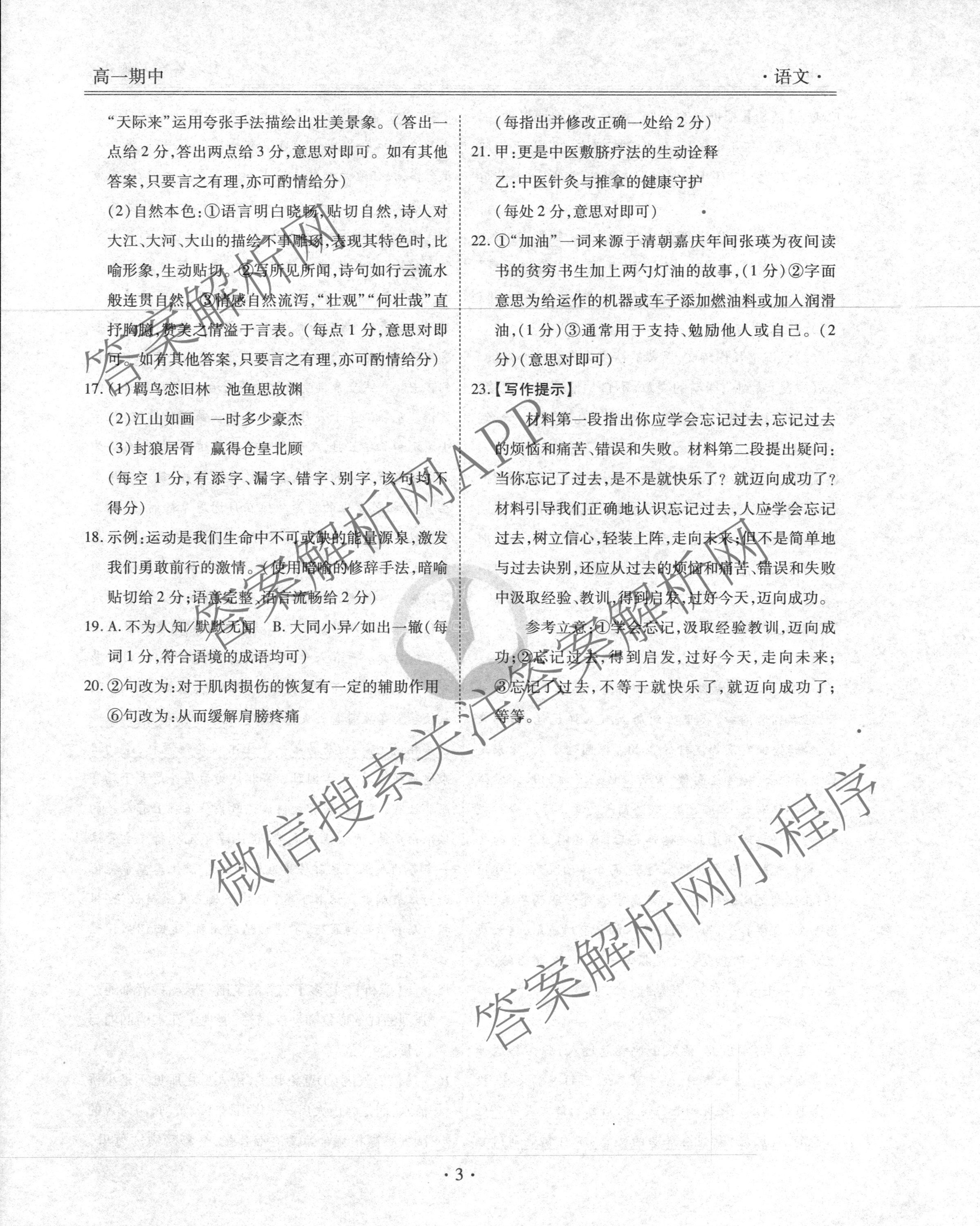 - (高一)[衡水金卷先享题]·月考卷 2024~2025学年度上学期年级期中考试语文答案