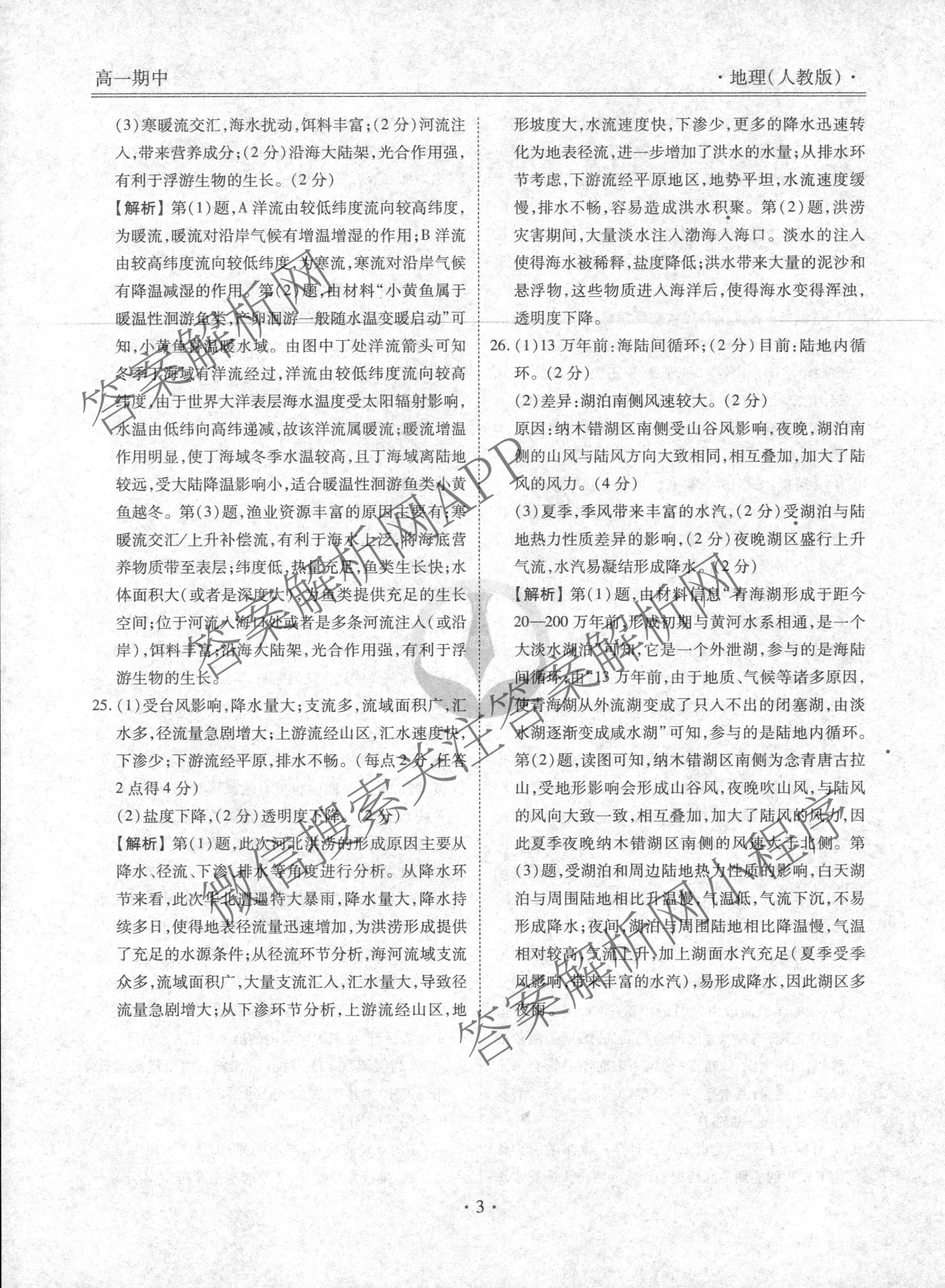 - 2024~2025高一[衡水金卷先享题]·月考卷 学年度上学期年级期中考试地理(人教版)答案