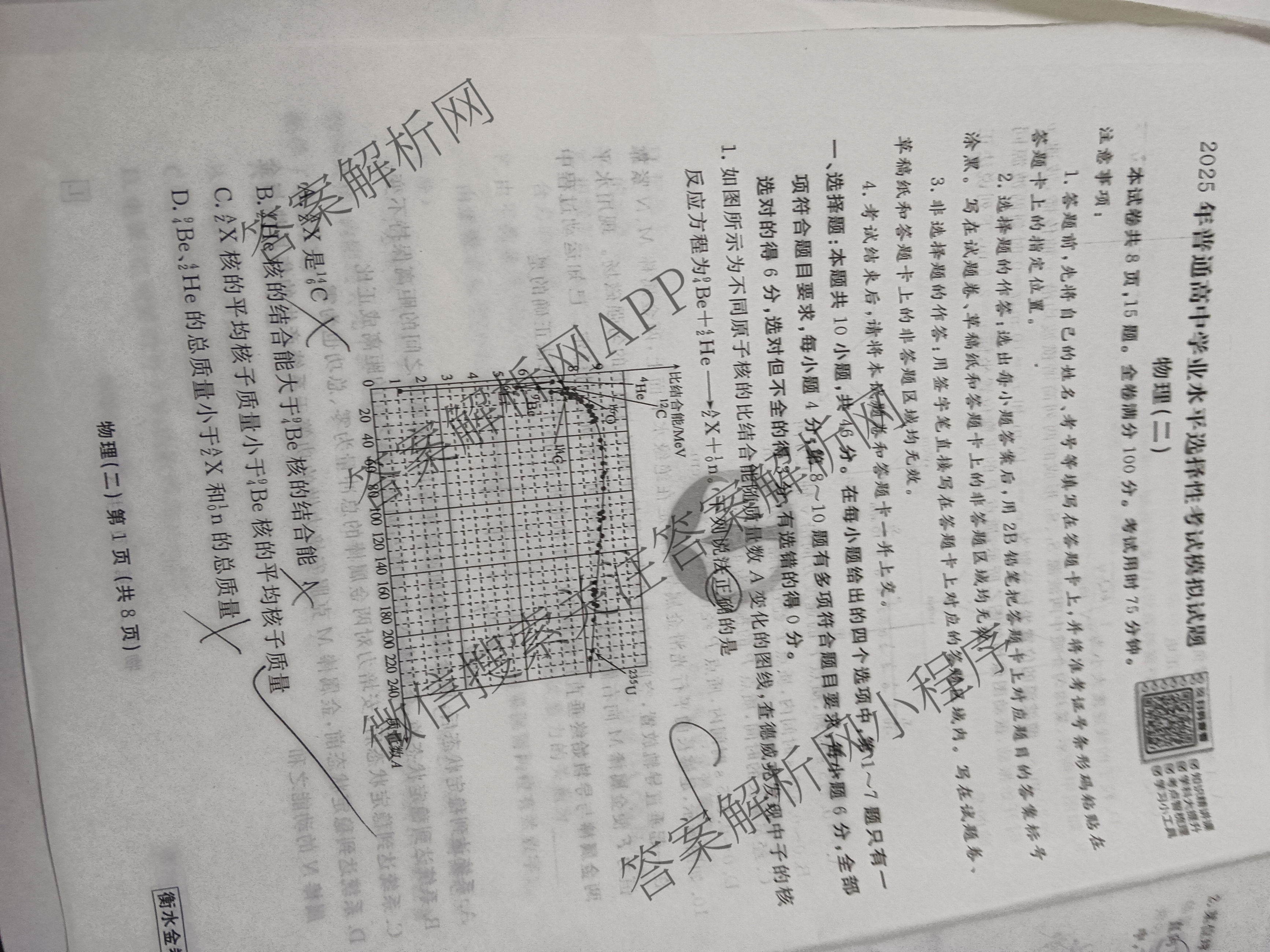- (高三)衡水金卷先享题·夯基卷 2025年普通高中学业水平选择性考试模拟 物理(HN)(二)2试题
