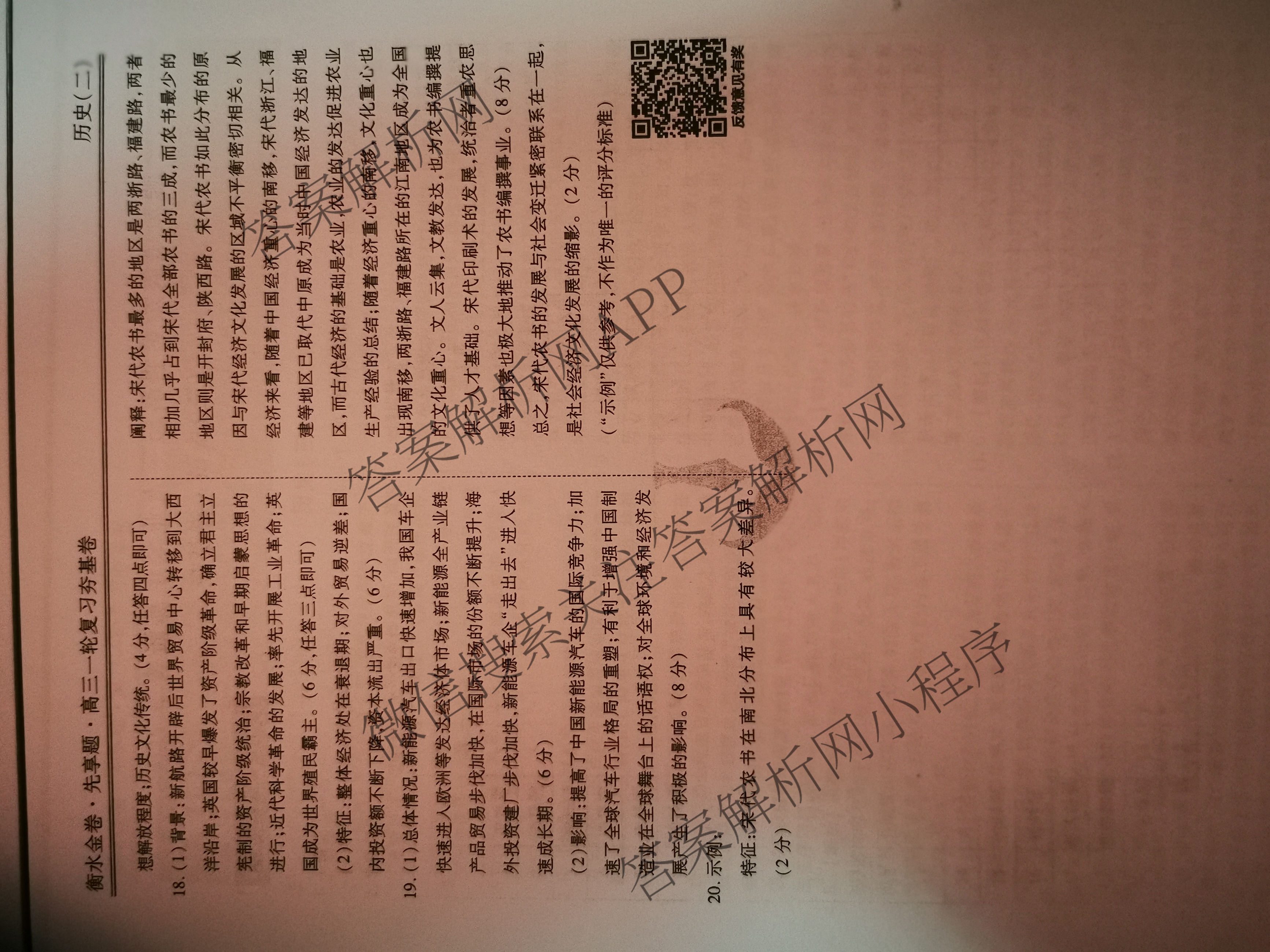 - [衡水金卷先享题]夯基卷 2025年普通高中学业水平选择性考试模拟 历史(AH)(二)2答案