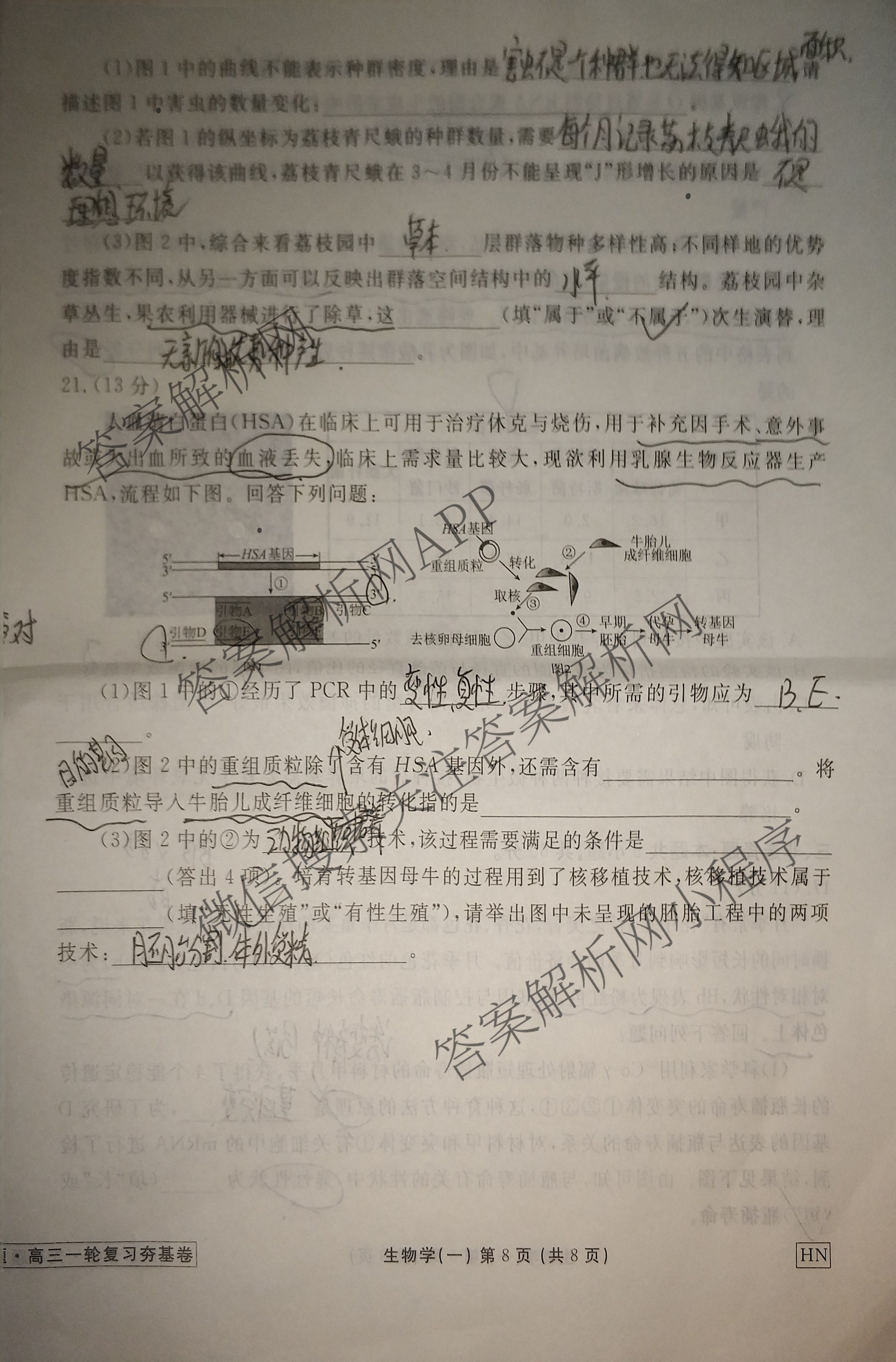 - [高三][衡水金卷先享题]·夯基卷 2025年普通高中学业水平选择性考试模拟 生物学HU)(一)1答案
