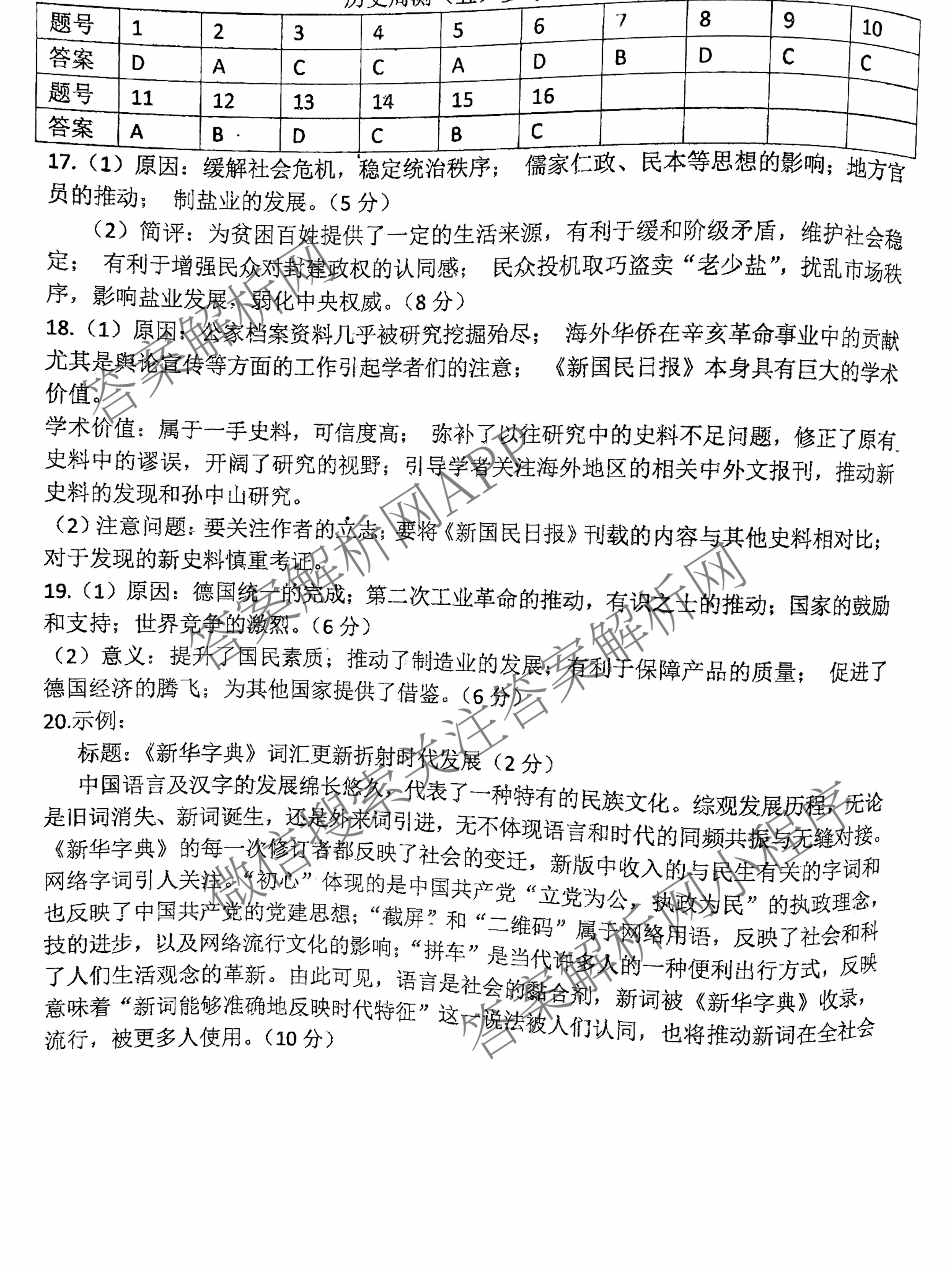 - (高三)(衡水金卷先享题)夯基卷 2025年普通高中学业水平选择性考试模拟 历史(L)(一)1答案