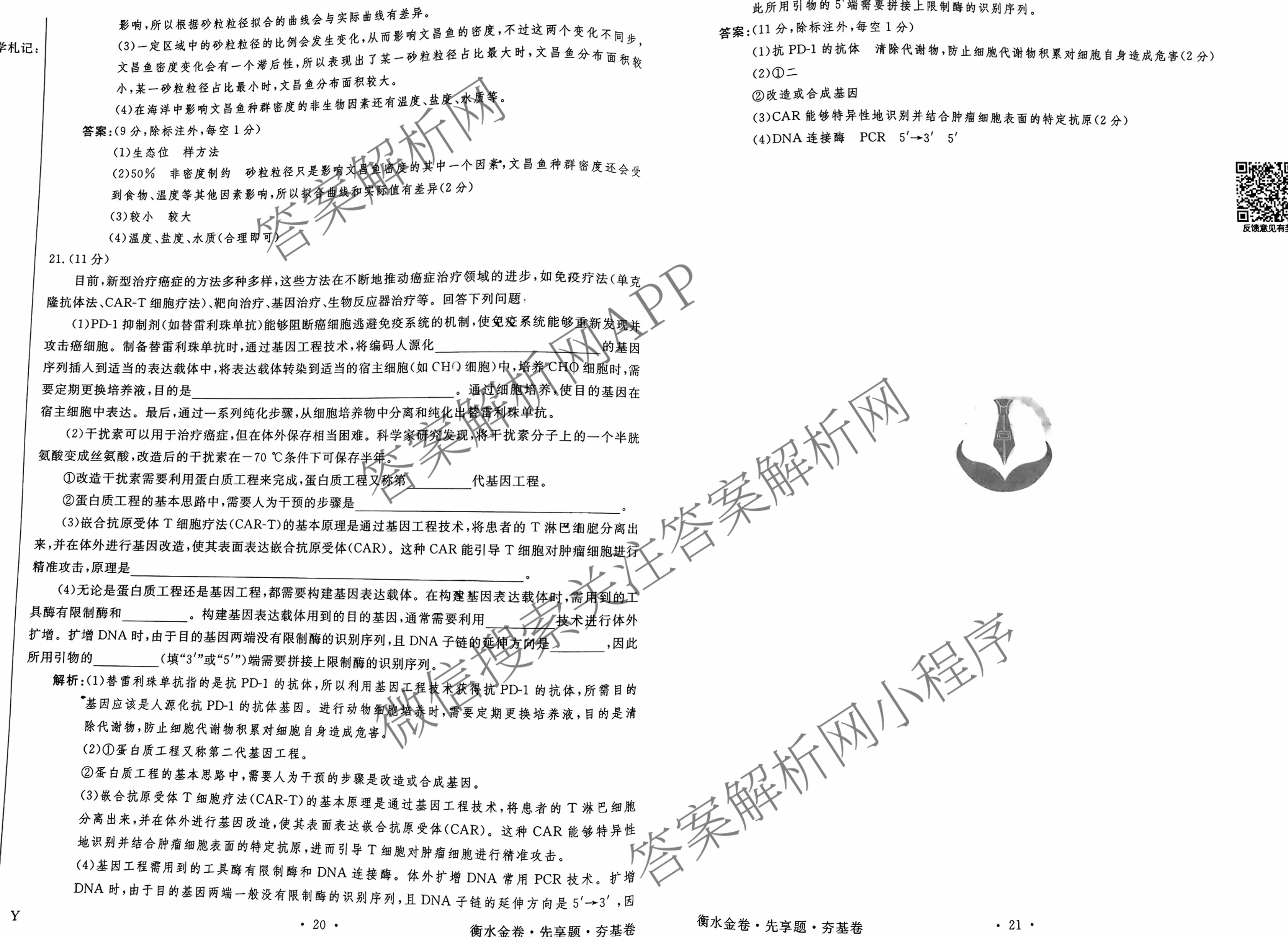 - [衡水金卷先享题]夯基卷 2025年普通高中学业水平选择性考试模拟 生物学HU)(二)2答案