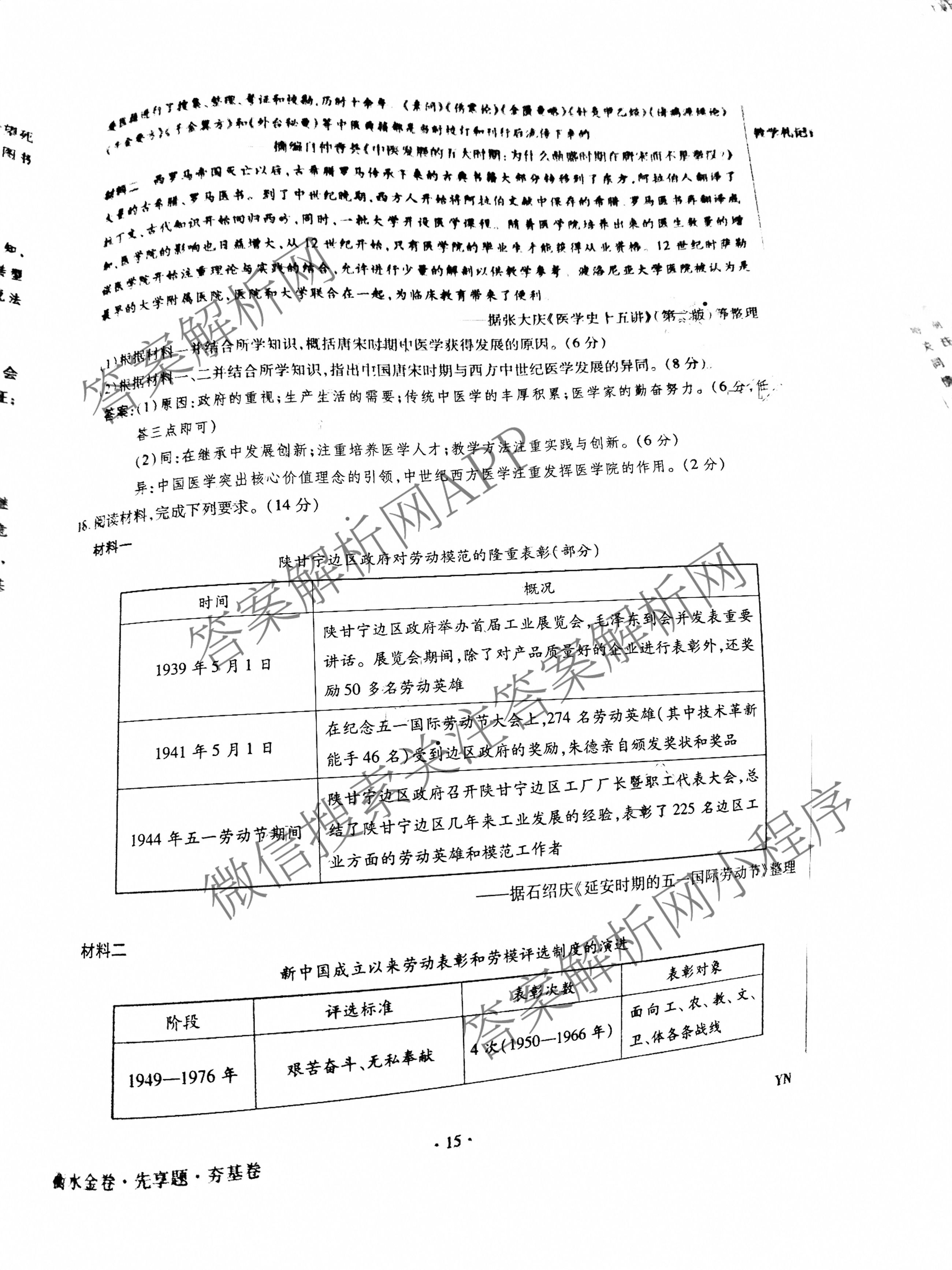 - [衡水金卷先享题]夯基卷 2025年普通高中学业水平选择性考试模拟 历史(AH)(二)2答案