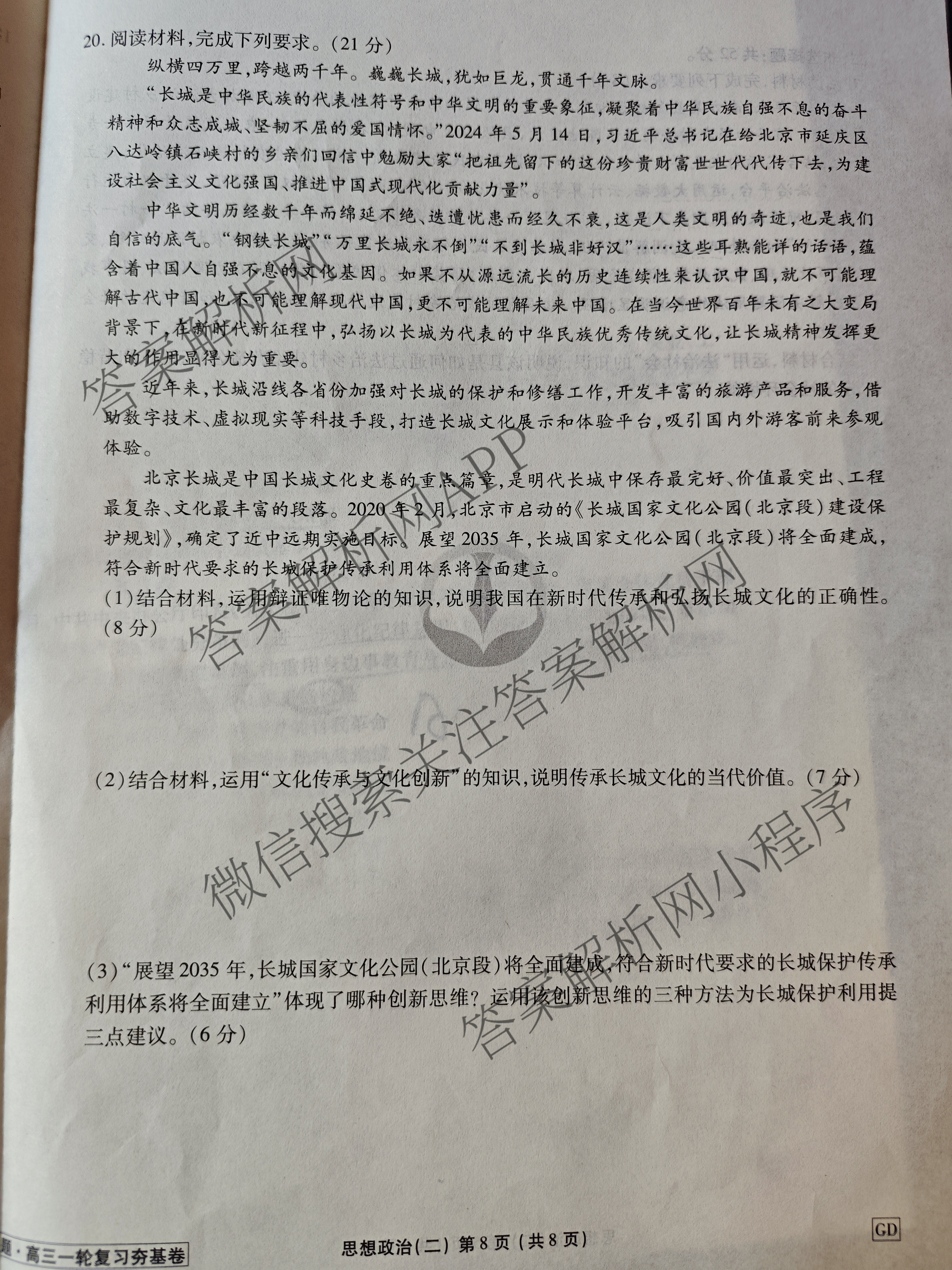 - (高三)(衡水金卷先享题)·夯基卷 2025年普通高中学业水平选择性考试模拟 政治(GD)(二)2答案