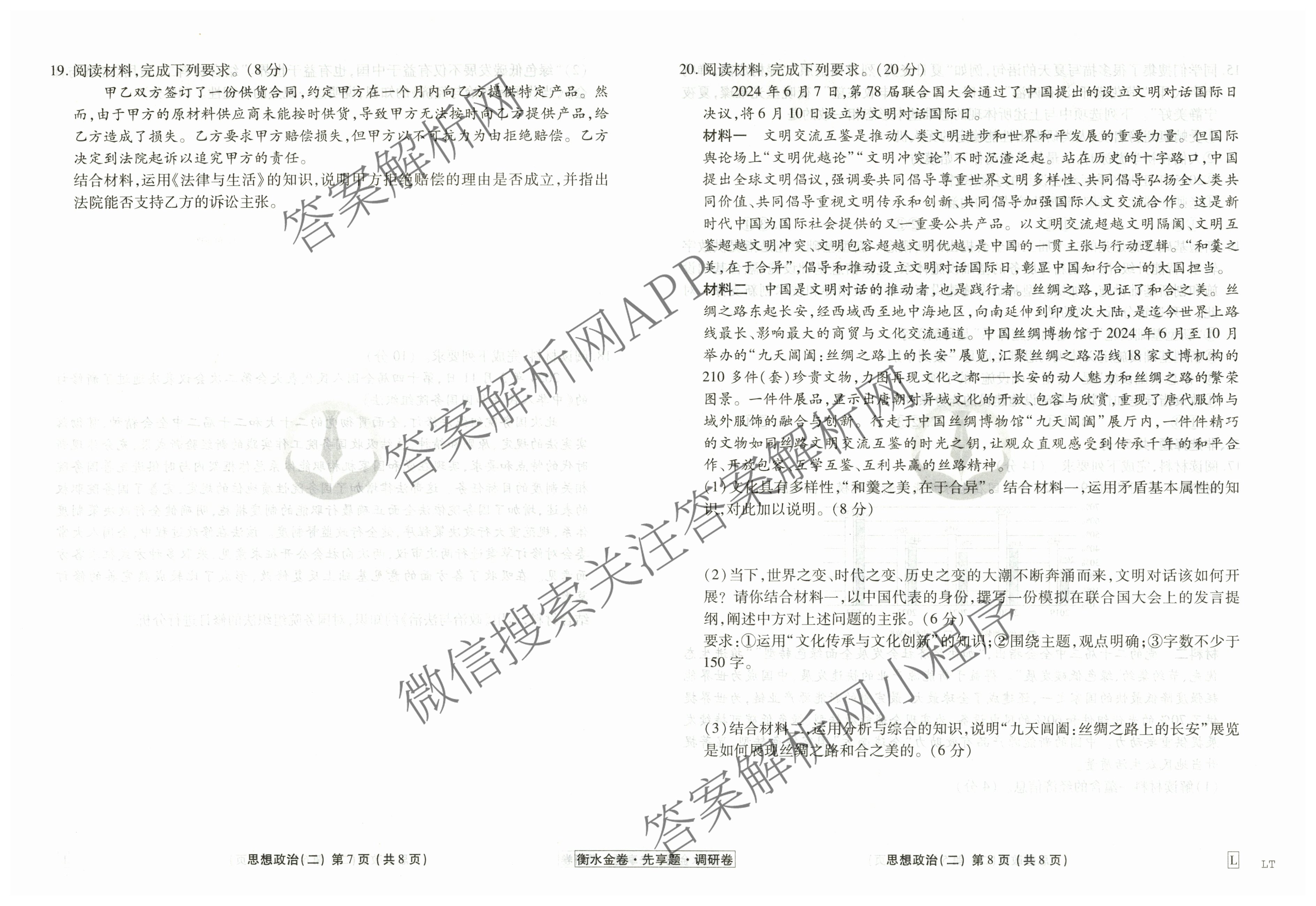 - (衡水金卷先享题)调研卷 2025年普通高中学业水平选择性考试模拟 政治(MH)(二)2答案