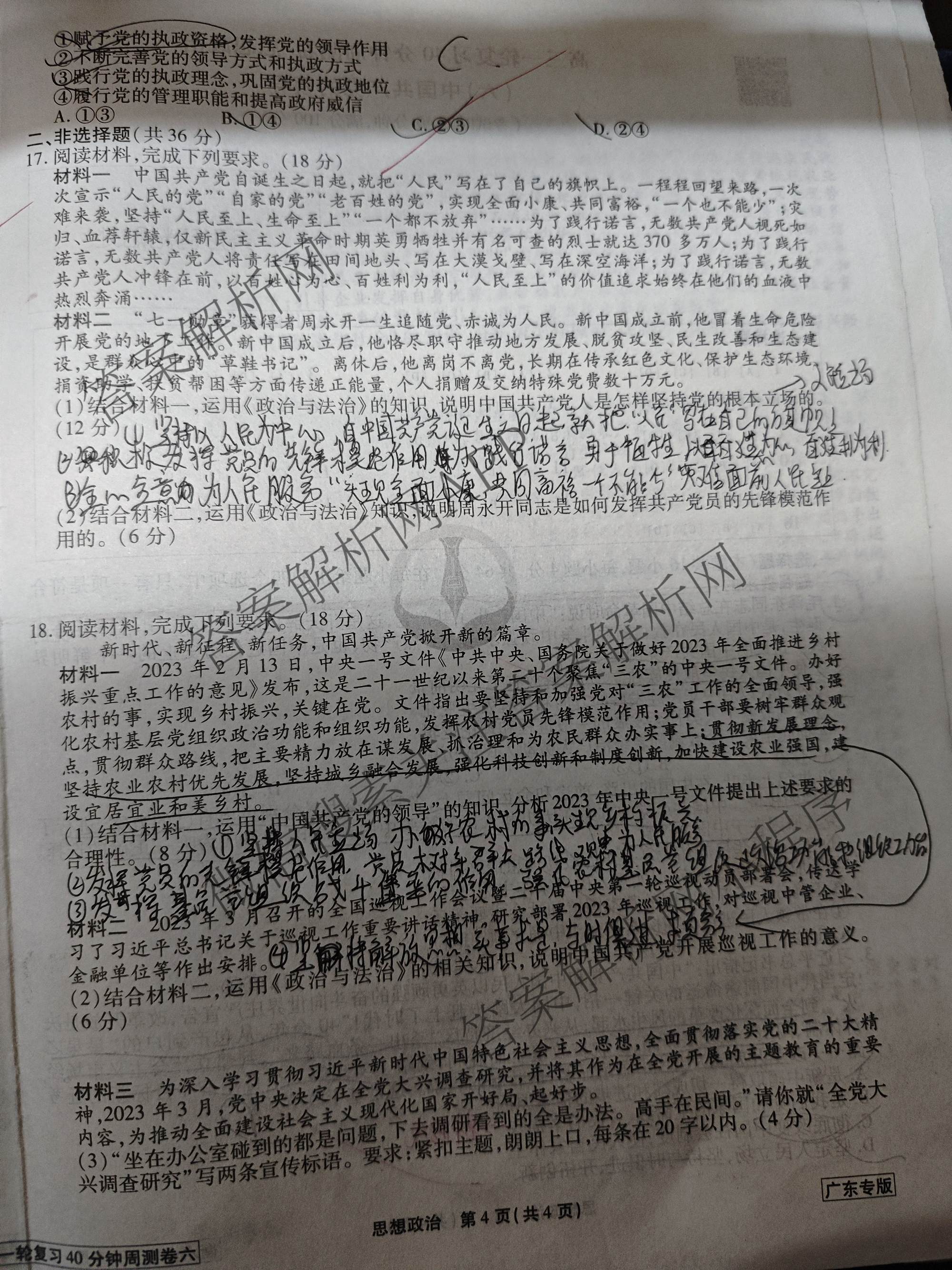 - 2024~2025(衡水金卷先享题)·(高三)一轮复习40分钟周测卷·政治(广东专版)(六)6答案