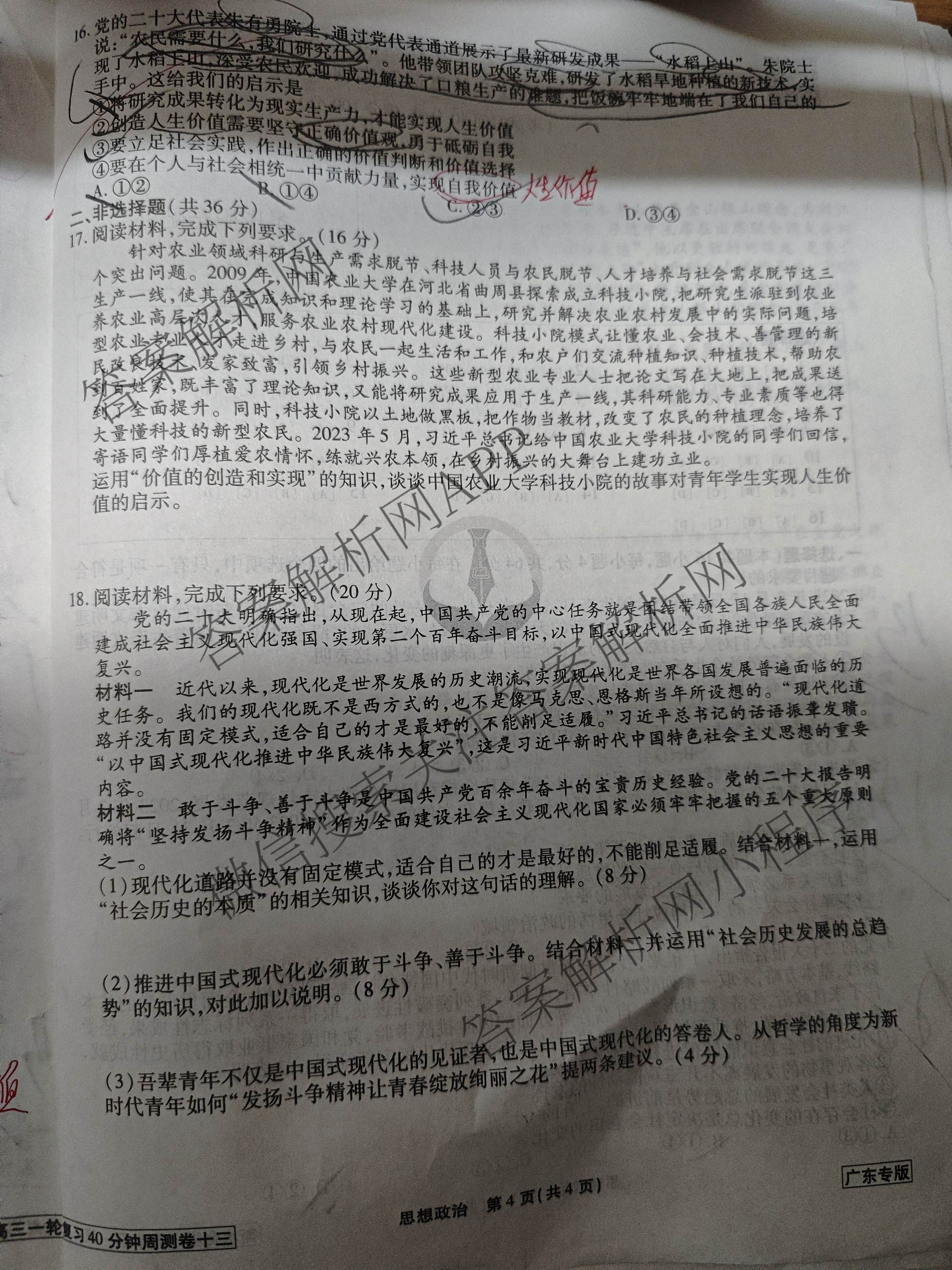 - 2024-2025(高三)(衡水金卷先享题)一轮复习40分钟周测卷政治(广东专版)(十三)13答案