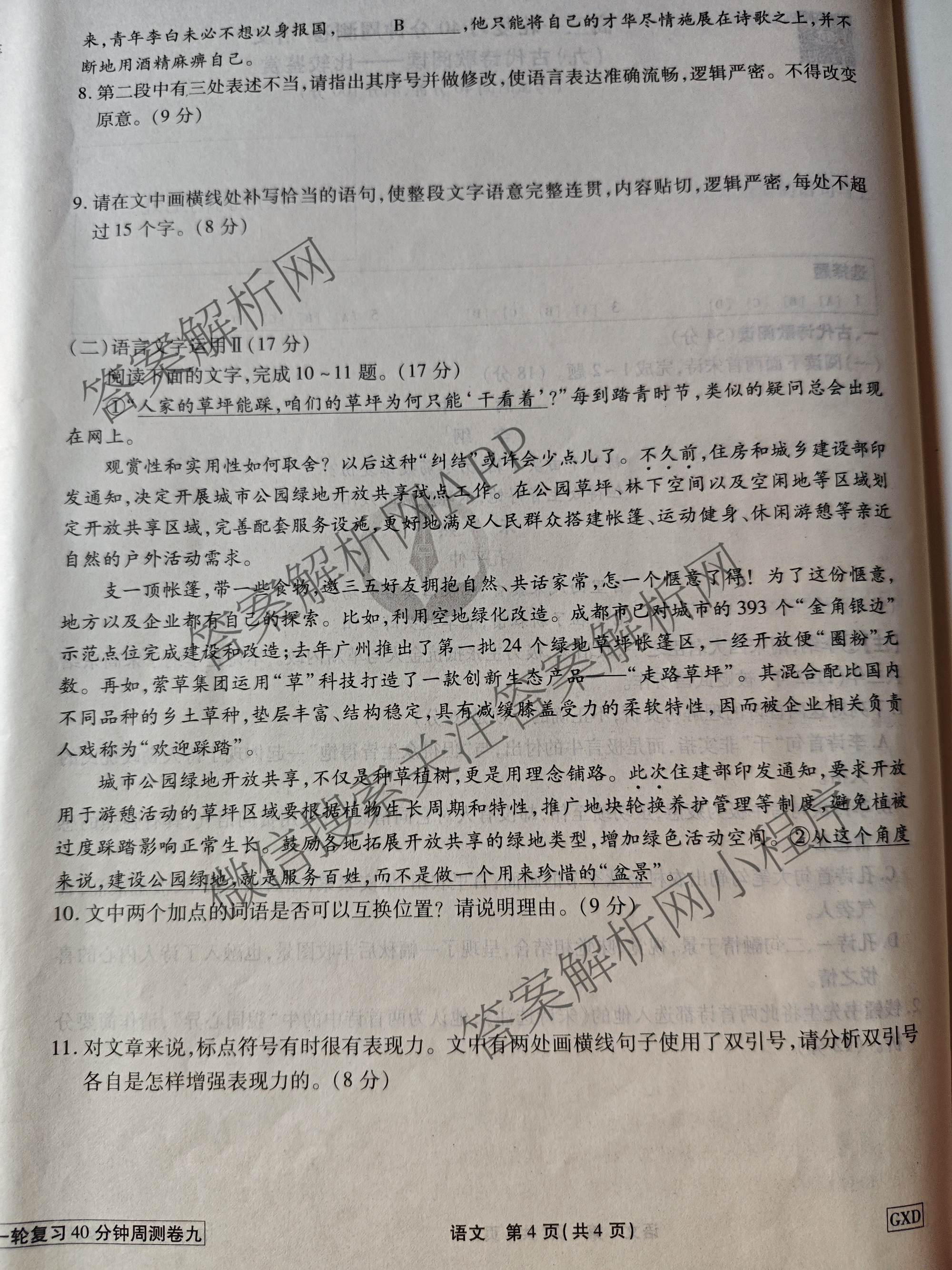 - 2024-2025[衡水金卷先享题][高三]一轮复习40分钟周测卷语文(GXD)(九)9试题