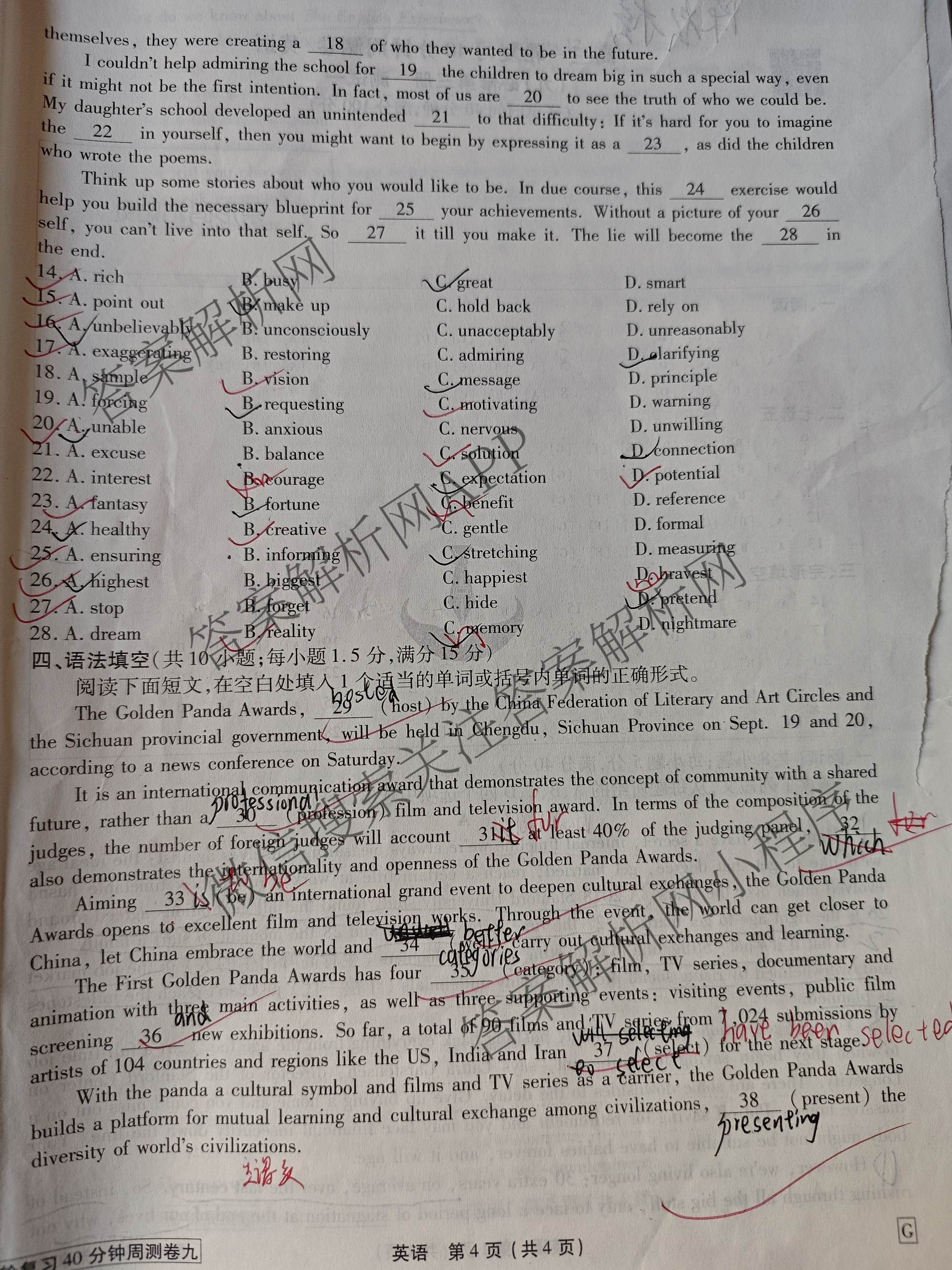 - 2024-2025[高三][衡水金卷先享题]·一轮复习40分钟周测卷·英语(G)(九)9答案