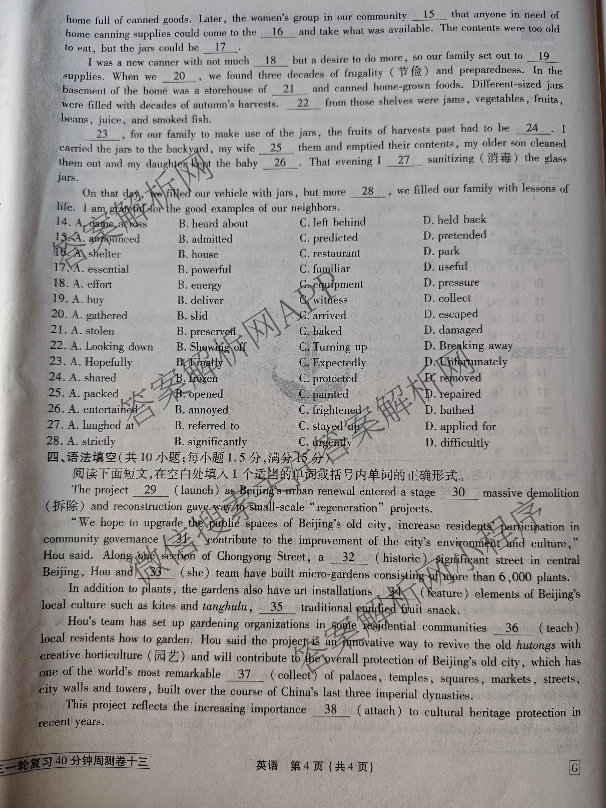 2024-2025衡水金卷先享题·高三一轮复习40分钟周测卷·英语(G)(十三)13试题,目前衡水金卷先享题答案网已经汇总了2024-2025衡水金卷先享题·高三一轮复习40分钟周测卷·英语(G)(十三)13试题的各科答案和试卷,获取更多衡水金卷先享题答案解析,请在关注本站。