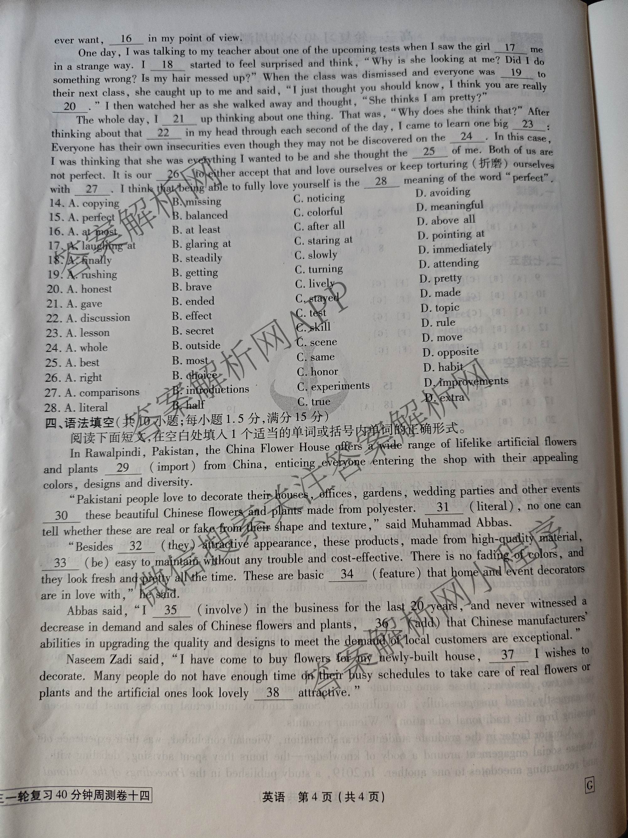 2024-2025衡水金卷先享题·高三一轮复习40分钟周测卷·英语(G)(十四)14试题,目前衡水金卷先享题答案网已经汇总了2024-2025衡水金卷先享题·高三一轮复习40分钟周测卷·英语(G)(十四)14试题的各科答案和试卷,获取更多衡水金卷先享题答案解析,请在关注本站。