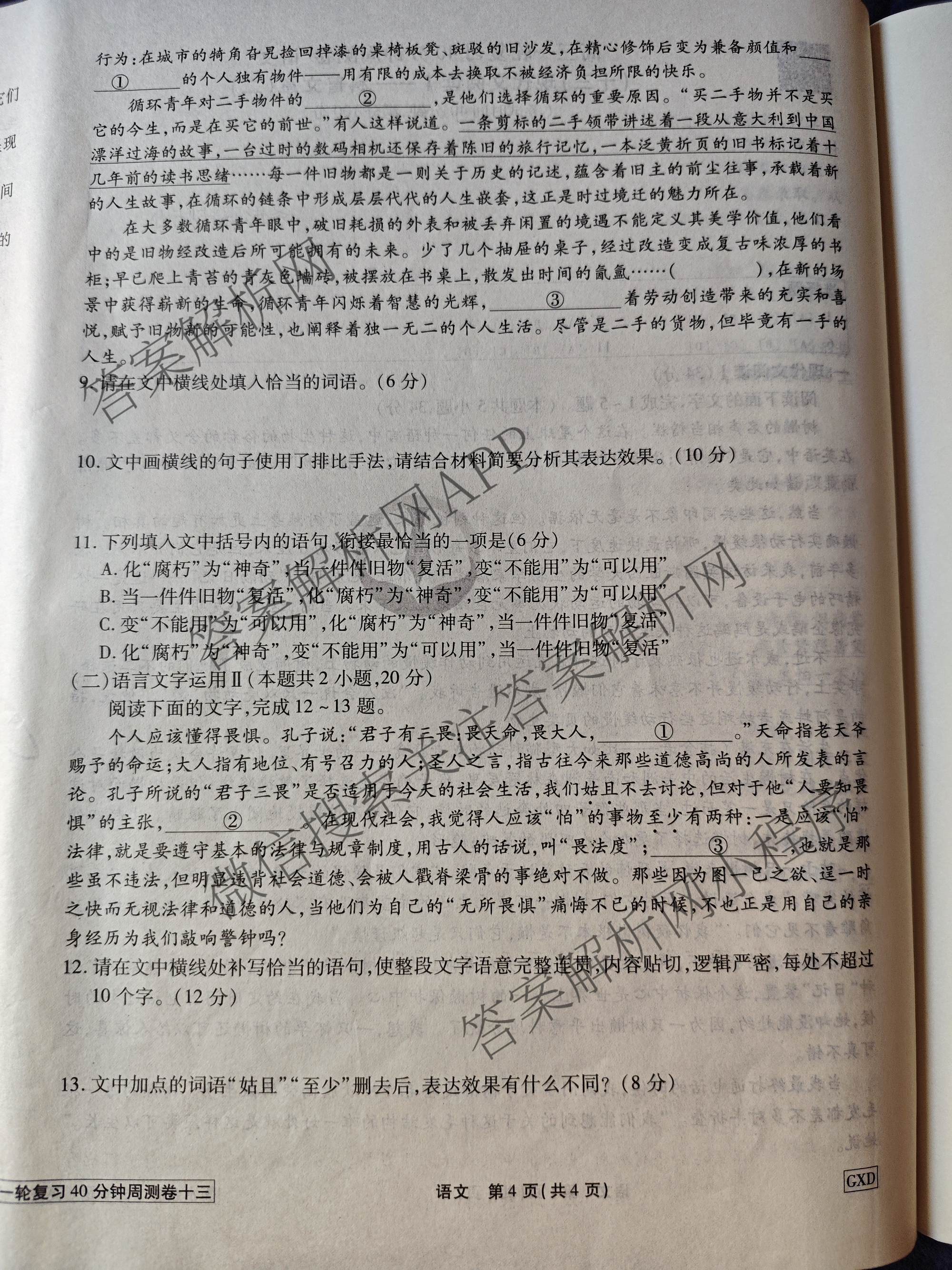 2024-2025衡水金卷先享题·高三一轮复习40分钟周测卷·语文(GXD)(十三)13试题,目前衡水金卷先享题答案网已经汇总了2024-2025衡水金卷先享题·高三一轮复习40分钟周测卷·语文(GXD)(十三)13试题的各科答案和试卷,获取更多衡水金卷先享题答案解析,请在关注本站。