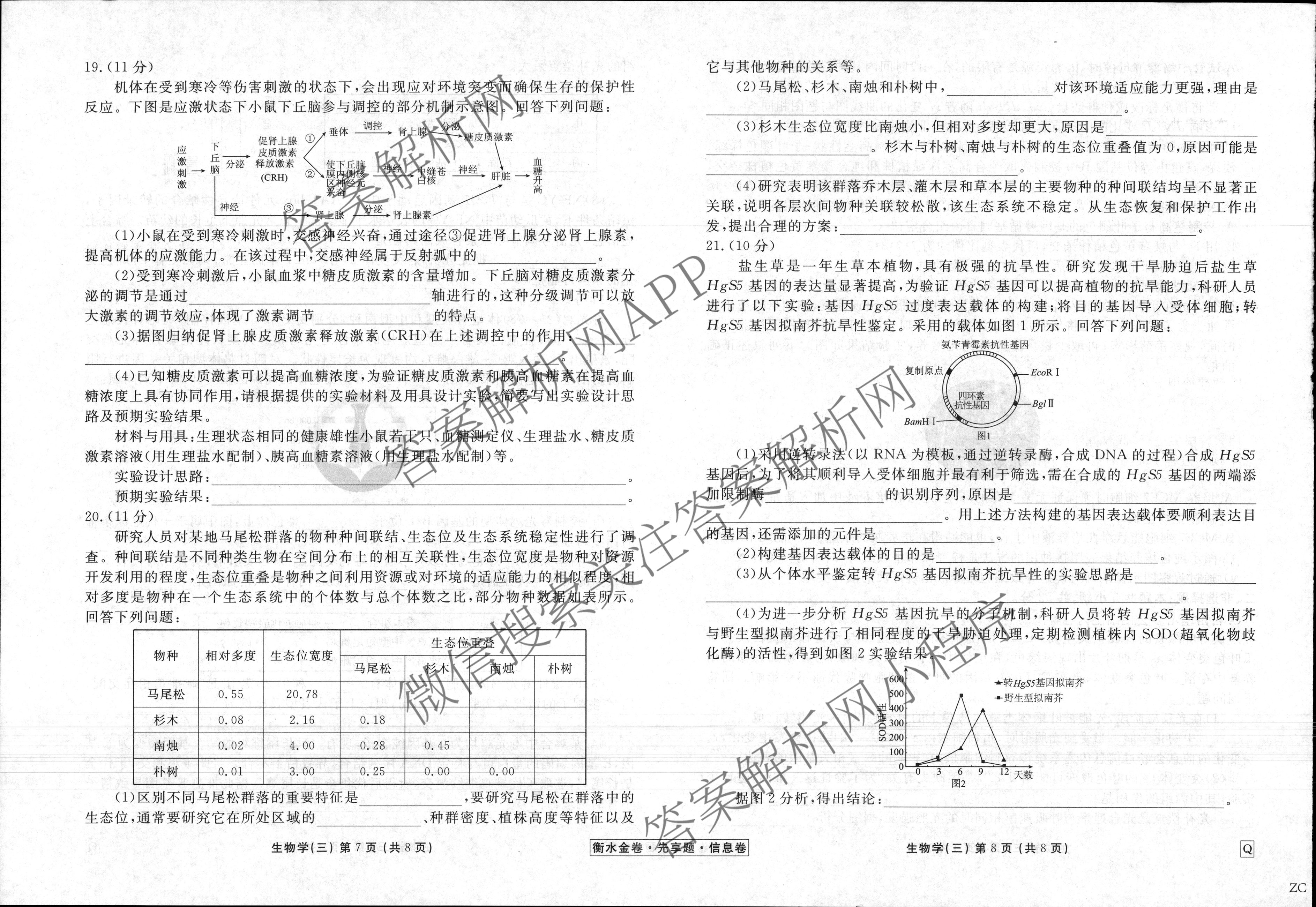 衡水金卷先享题·信息卷 2025年普通高中学业水平选择性考试模拟试题(三)3生物(Q)试题,目前衡水金卷先享题答案网已经汇总了衡水金卷先享题·信息卷 2025年普通高中学业水平选择性考试模拟试题(三)3生物(Q)试题的各科答案和试卷,获取更多衡水金卷先享题答案解析,请在关注本站。