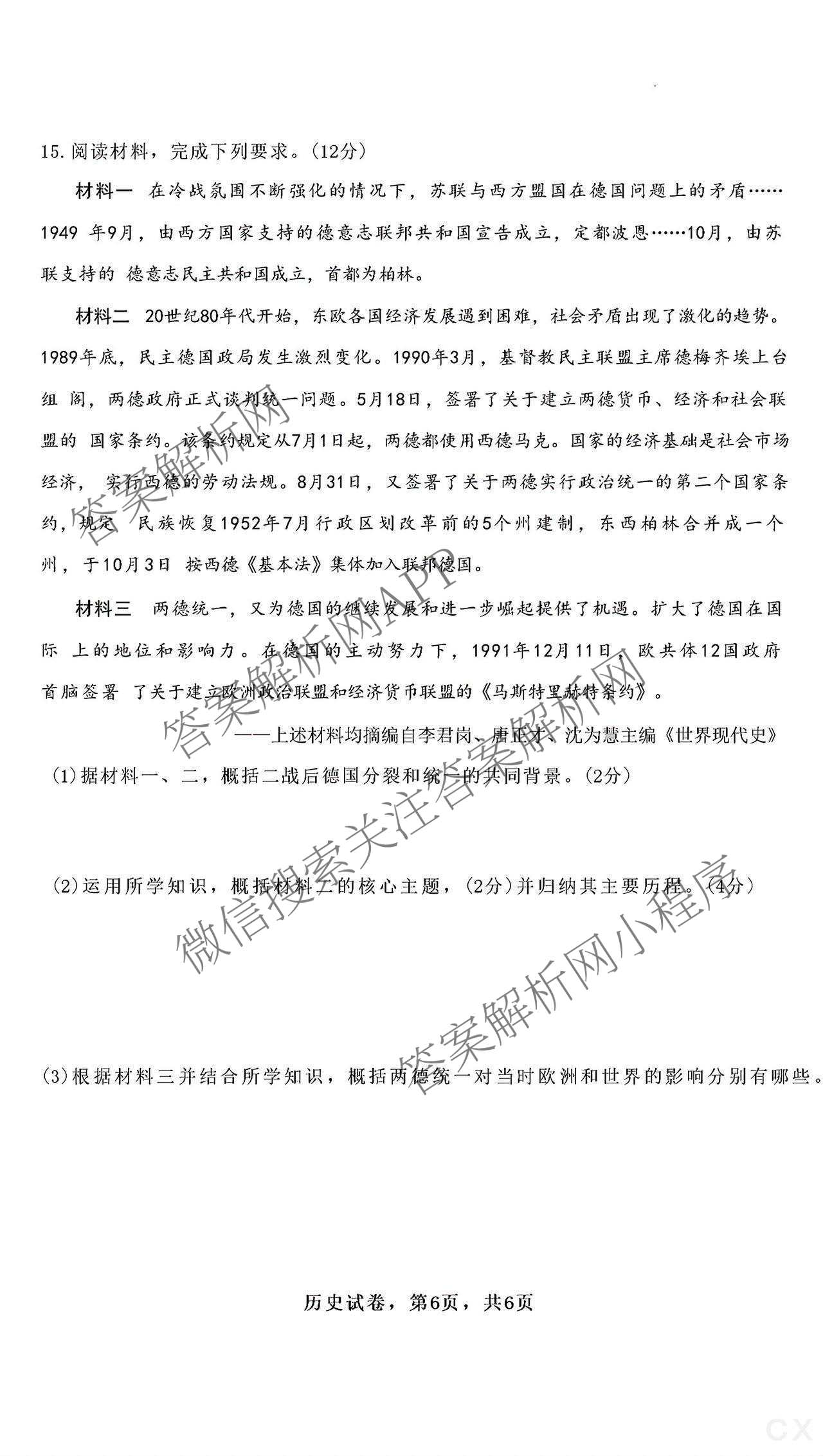 河北省2025年初中学业水平摸底练习(九年级)历史试题,目前衡水金卷先享题答案网已经汇总了河北省2025年初中学业水平摸底练习(九年级)历史试题的各科答案和试卷,获取更多地方模拟答案解析,请在关注本站。